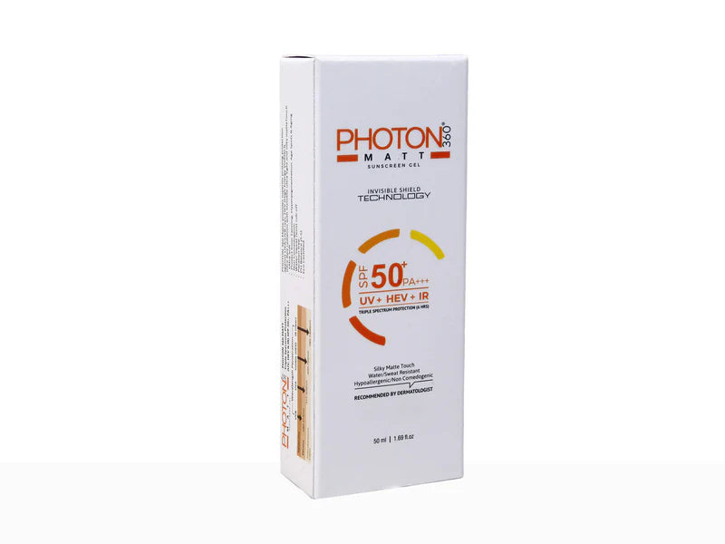 Aclaris Photon 360 Matte Sunscreen Gel SPF 50+ PA+++ is a sunscreen that provides broad-spectrum protection against UVA, UVB, high-energy visible rays, blue light, and infrared rays. It has a light, non-shiny formulation enriched with antioxidants.