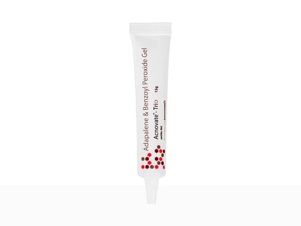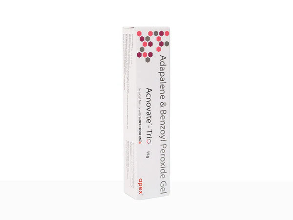 Acnovate-Trio Gel is a prescription medication that contains a combination of medicines that are used to treat acne, which are Adapalene and Benzoyl Peroxide. The gel removes the dead layer of skin on the surface of the skin and prevents the growth of bacteria. This helps to improve the appearance of acne and prevent new breakouts from forming.