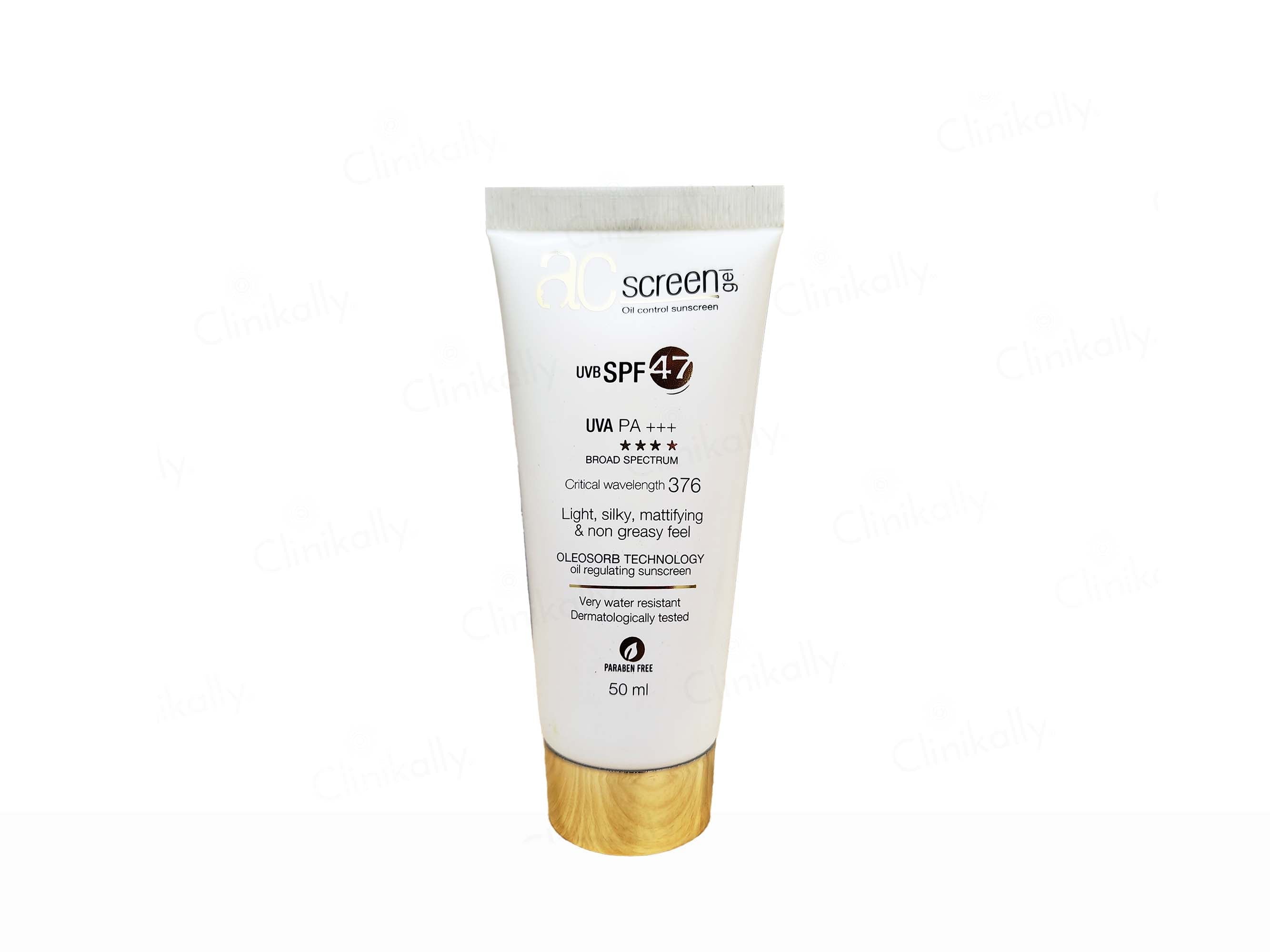 Acscreen Oil Control Sunscreen Gel SPF 47 provides high-level broad-spectrum protection against UVA and UVB rays while controlling excess oil and shine. Formulated with mattifying agents and soothing ingredients, this lightweight gel absorbs quickly, leaving a non-greasy, matte finish. Ideal for oily, combination and acne-prone skin, this sunscreen gel helps prevent sunburn, premature aging, and sun-induced skin damage. Enriched with Tea Tree Oil and Vitamin E Acetate, this sunscreen is perfect for daily use.