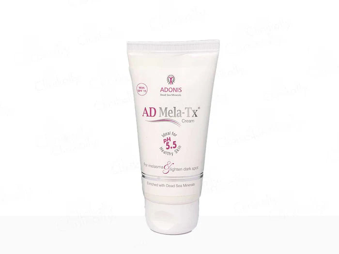 Adonis AD Mela-TX Cream SPF 15 is a hydrating cream designed to reduce dark spots and melasma, promoting a more even skin tone.
