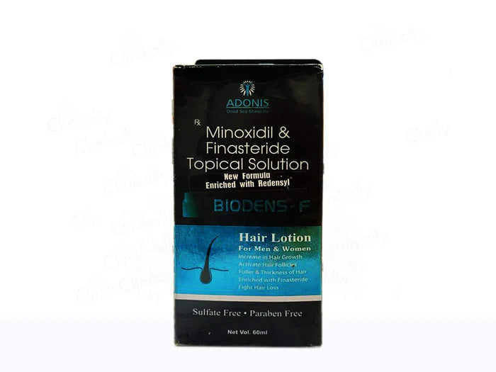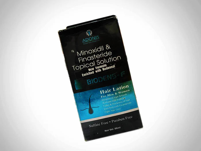 Adonis Biodens-F 5 Topical Solution is a trusted remedy for hair loss and baldness. Featuring Minoxidil and Finasteride, it effectively promotes hair regrowth, especially in men suffering from male pattern baldness. This easy-to-apply solution revitalizes hair follicles, increasing hair density and thickness. It's a reliable choice for regaining a fuller, more youthful head of hair and boosting self-confidence.