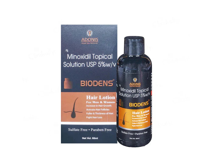 Adonis Biodens Topical Solution is a medication containing the active ingredient Minoxidil. It is commonly used to treat hair loss, particularly in cases of male pattern baldness and female pattern hair loss. This easy-to-apply solution revitalizes hair follicles, increasing hair density and thickness. It's a reliable choice for regaining a fuller, more youthful head of hair and boosting self-confidence.