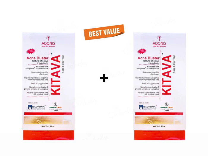 Adonis Kitava Acne Buster Gel is a multifunctional formulation designed to provide effective treatment for acne by controlling acne, sebum, open pores, bacteria, and reducing inflammation.