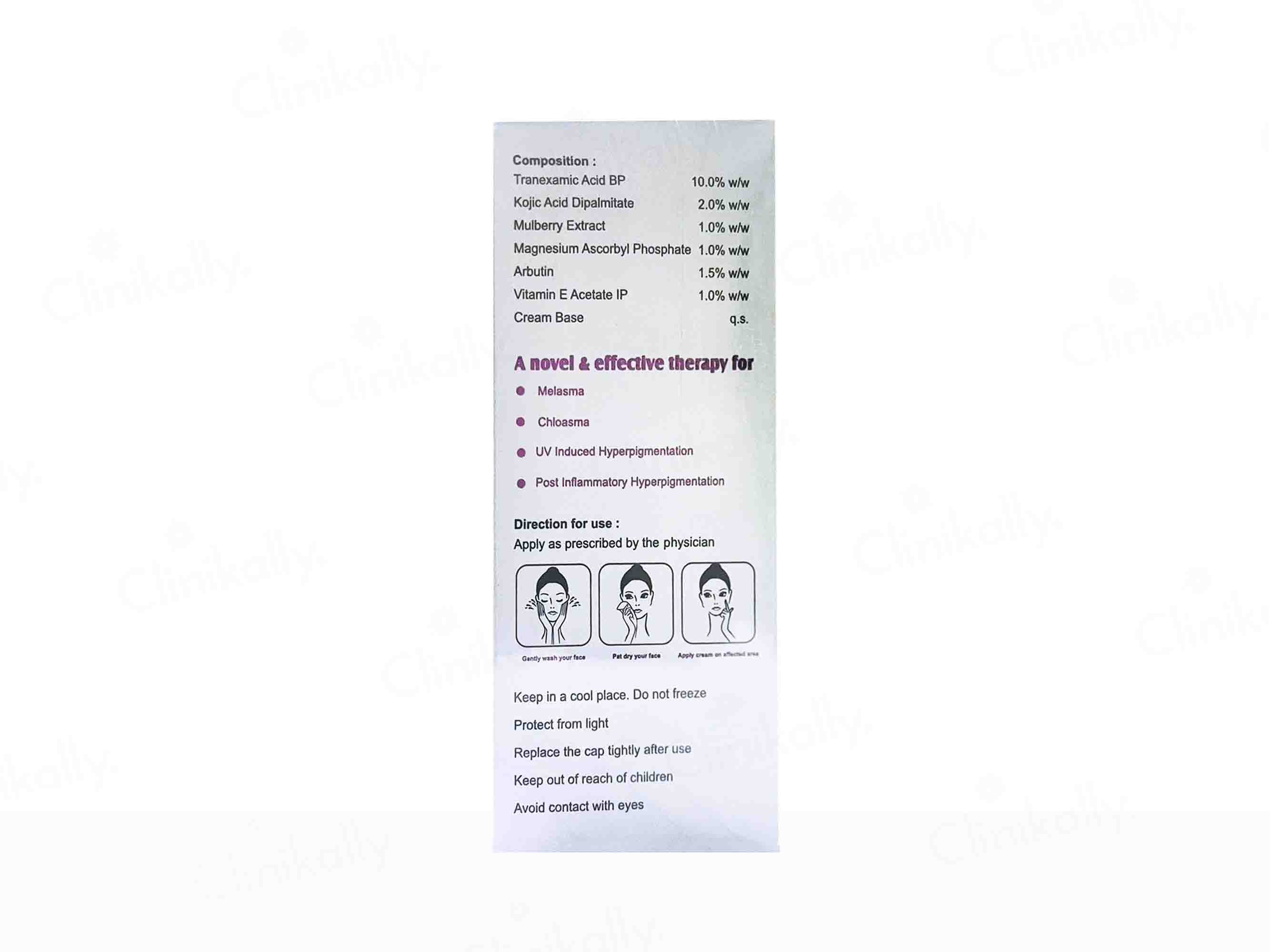 Anthocyn-TX Cream is a scientifically advanced depigmenting treatment formulated with 10% Tranexamic Acid, Kojic Acid Dipalmitate, Arbutin, and Vitamin E Acetate to target melasma, chloasma, UV-induced pigmentation, and post-inflammatory hyperpigmentation. Enriched with Mulberry Extract and Magnesium Ascorbyl Phosphate (Vitamin C), it reduces dark spots, brightens skin tone, and offers antioxidant protection. This dermatologically effective formula helps inhibit melanin production while improving skin clarity and radiance. Suitable for daily use, Anthocyn-TX Cream visibly fades discoloration, evens out complexion, and restores skin luminosity over time.