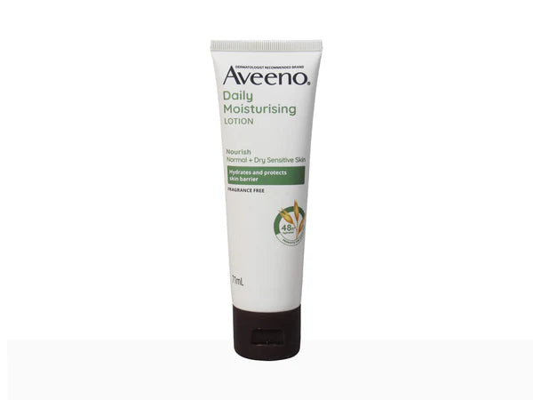 Aveeno Daily Moisturising Lotion with prebiotic oat formula intensely nourishes and replenishes dry skin. This fragrance-free, non-greasy lotion provides 24-hour moisturization, restoring the skin's natural moisture barrier. Suitable for daily use, it leaves the skin feeling soft, smooth, and hydrated.