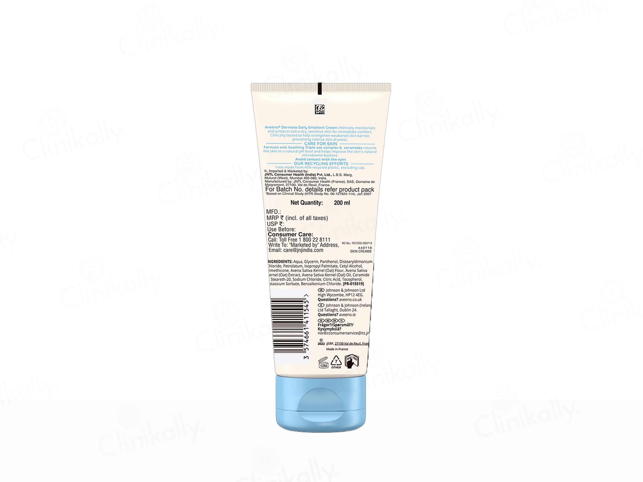 Aveeno Dermexa Daily Emollient Cream is designed to moisturize and soothe very dry and atopic-prone skin, suitable for babies, children, and adults. This clinically proven formula provides immediate comfort and helps prevent flare-ups of intense skin dryness. It contains a pre-biotic triple oat complex and ceramides, which help to improve and stabilize the skin's natural microbiome balance, resulting in healthier and more resilient skin from day one. The effects can last up to seven days after the last application. This high-tolerance, unscented formula is suitable for sensitive skin and dermatologist tested.