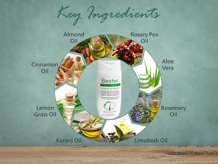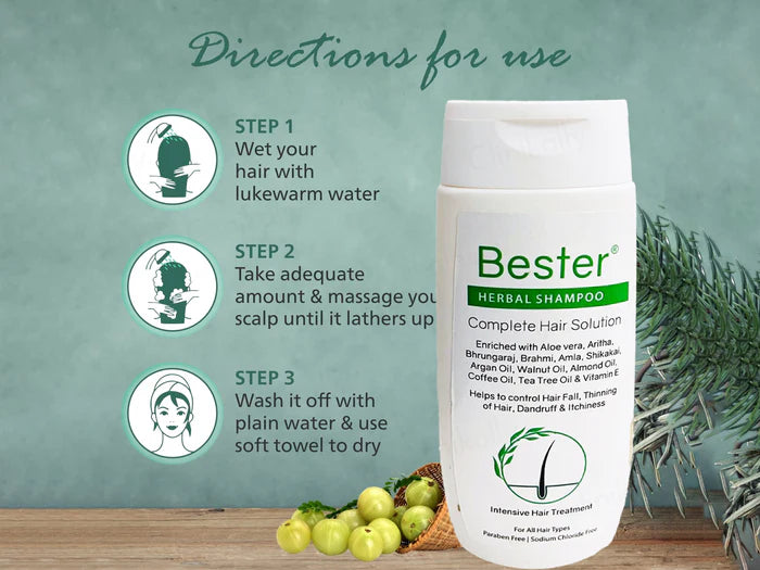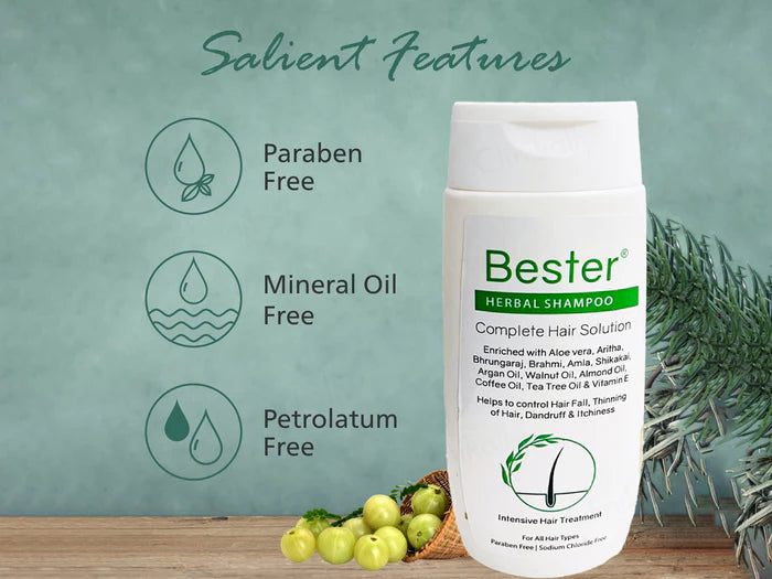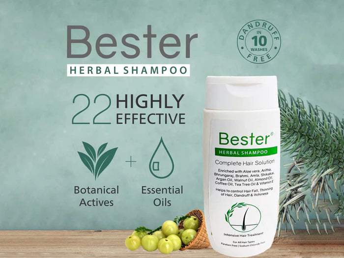 Bester Herbal Shampoo is a gentle cleansing formula enriched with natural herbs to nourish and revitalize hair.