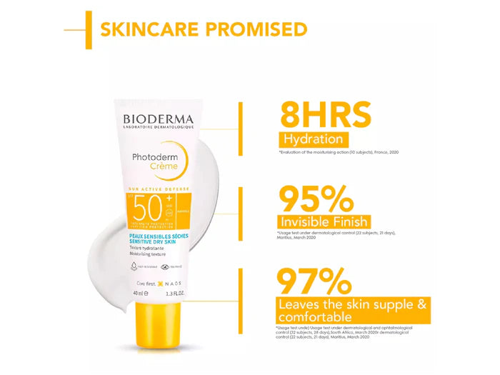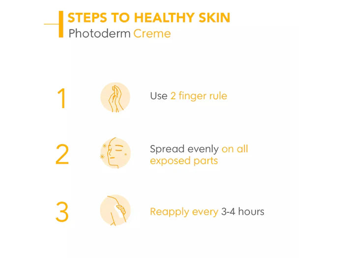 To use Bioderma Photoderm Creme SPF 50+ PA++++, apply generously to exposed skin areas before sun exposure. Reapply every two hours, especially after swimming, sweating, or towel drying.