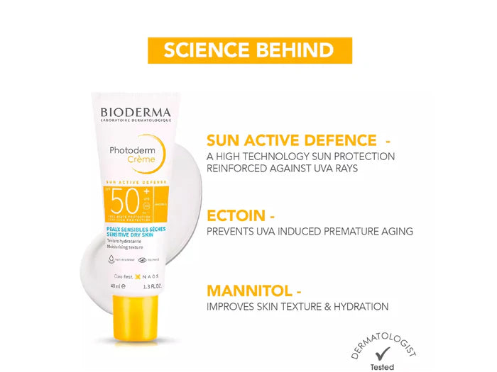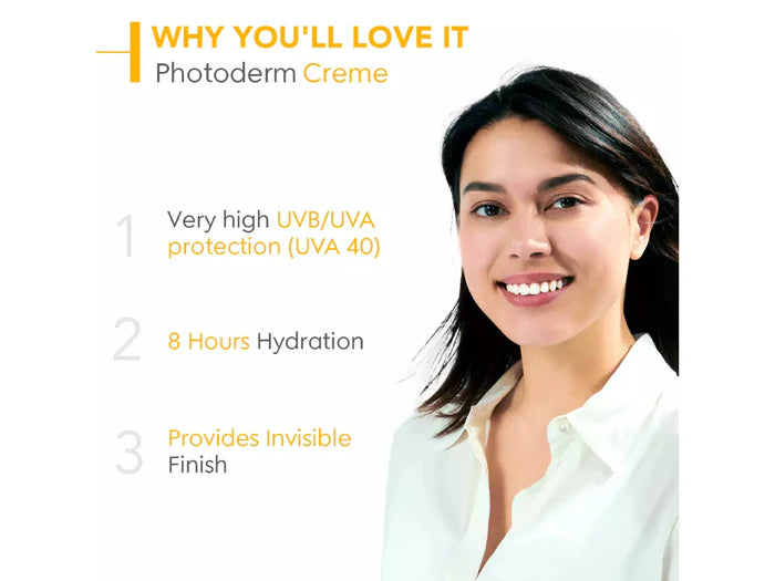 Bioderma Photoderm Creme SPF 50+ PA++++ is an advanced sunscreen that provides high-tech sun protection reinforced against UVA rays, preventing tanning and sun spots.