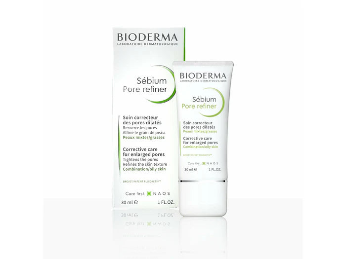 Bioderma Sebium Pore Refiner regulates sebum production, reduces pore size, and improves skin texture for a smoother complexion.