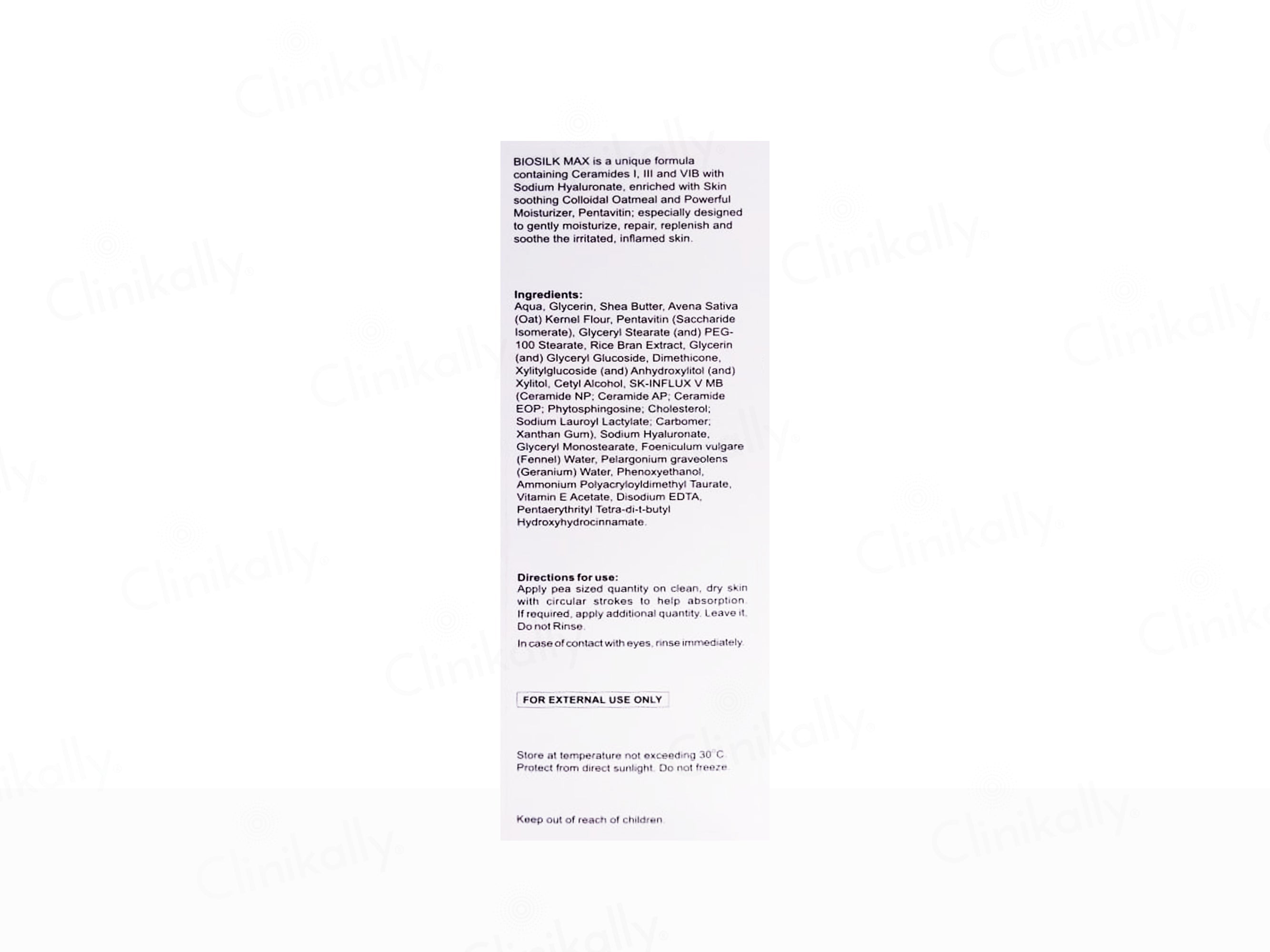 Biosilk Max Intense Moisturizing Cream is a dermatologist-tested skin repair formula enriched with Ceramides I, III, and VIB in a 3:1:1 ratio, Sodium Hyaluronate, and soothing Colloidal Oatmeal. Designed to calm irritated, inflamed skin, it delivers deep nourishment for up to 72 hours while restoring and protecting the skin barrier. Shea Butter, Pentavitin, Rice Bran, and Fennel Extracts ensure long-lasting hydration and smoothness. Perfect for all skin types, this advanced cream helps relieve dryness, repair damage, and maintain a healthy, resilient complexion.