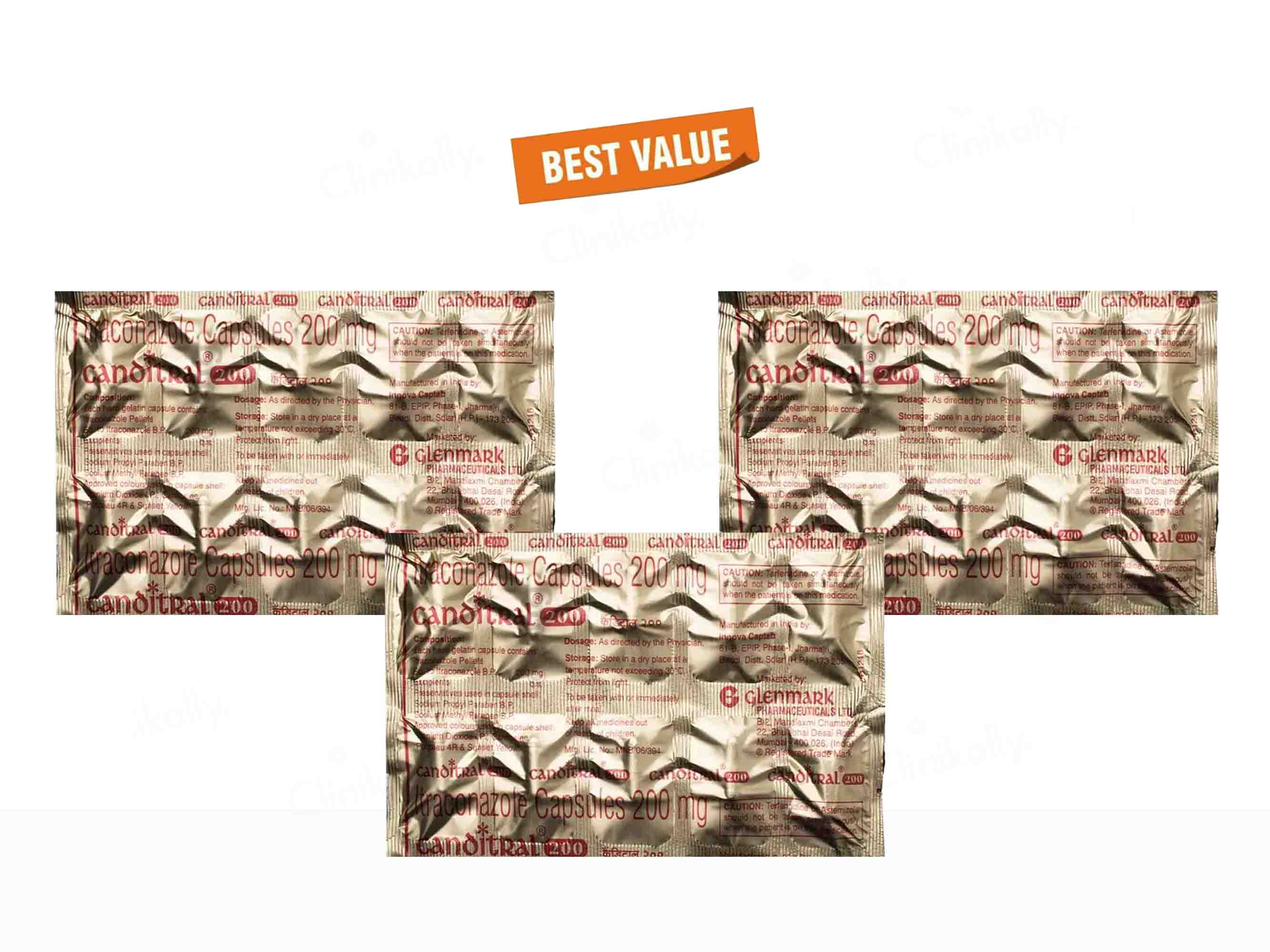 Canditral 200 Capsule is an antifungal medication effective in treating various fungal infections including those affecting the mouth, throat, vagina, as well as fingernails and toenails. It operates by inhibiting the growth of fungi, targeting and destroying the fungal cell membrane. This action not only stops the spread of the fungi but also kills them, providing relief from the infection and promoting the healing of affected areas. It's a targeted treatment option for patients dealing with fungal infections in different parts of the body.