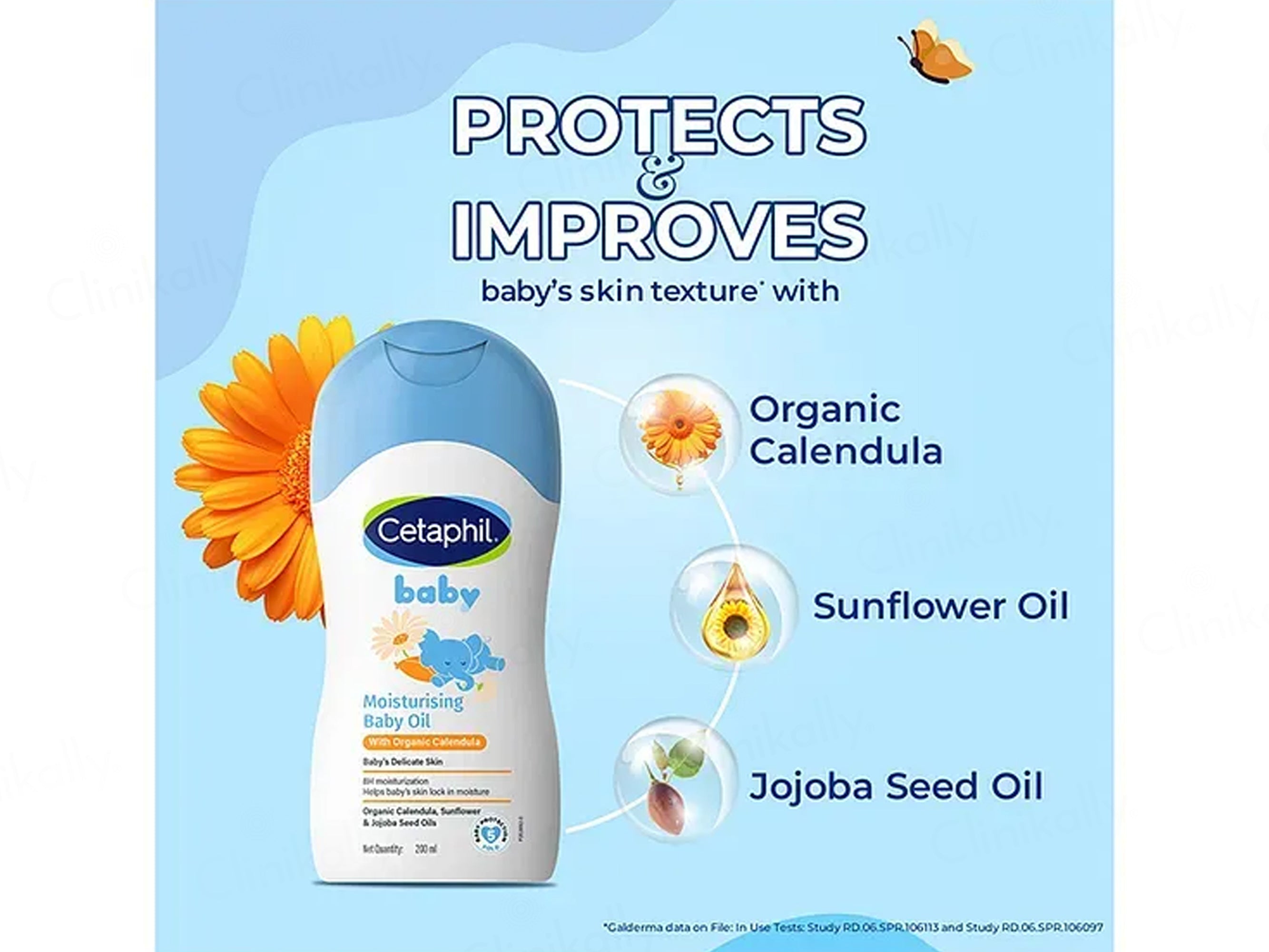 Cetaphil Baby Moisturising Oil with Organic Calendula is a gentle, non-sticky oil designed to hydrate and protect delicate baby skin for infants and adults. Enriched with organic calendula, sunflower, and jojoba seed oils, this hypoallergenic formula softens skin, locks in moisture for up to 8 hours, and soothes irritation, offering long-lasting hydration. Ideal for daily use, it provides a pure, fragrance-free solution to keep baby’s skin smooth, protected, and comfortable over time.