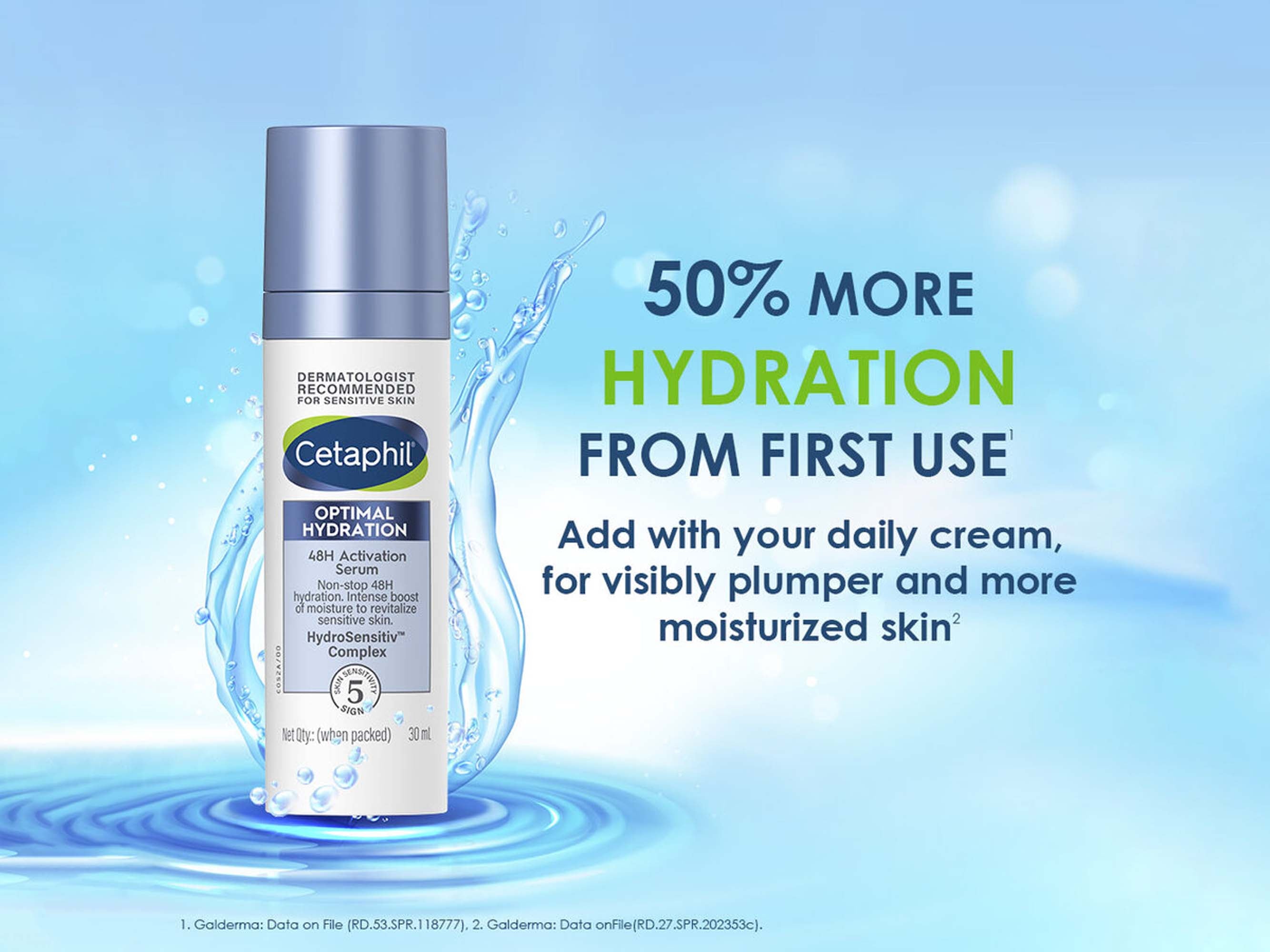 Cetaphil Optimal Hydration 48H Activation Serum is a lightweight skincare serum designed to provide deep hydration for 48 hours and improve the overall quality of sensitive skin.