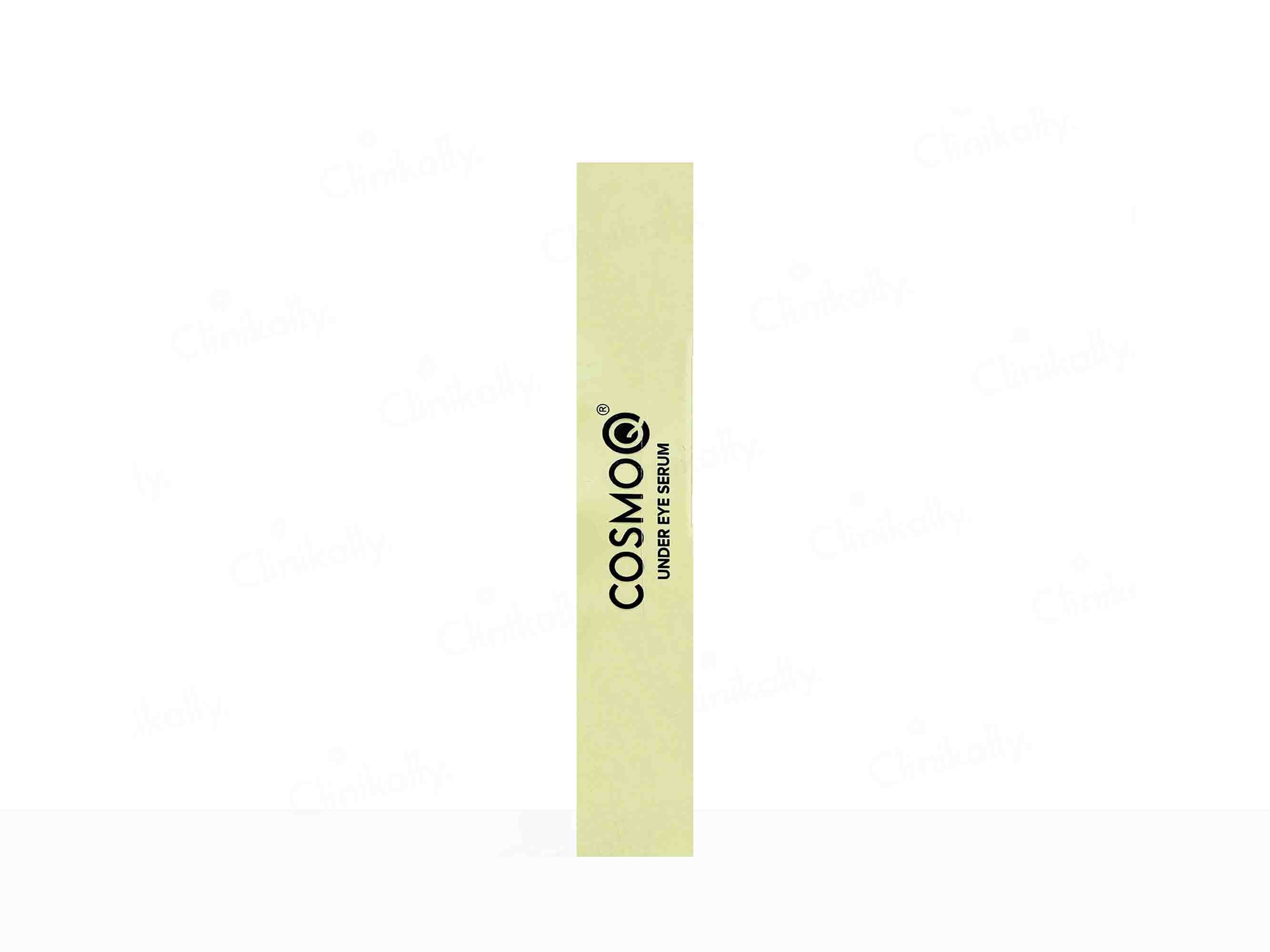 Revitalize your under-eye area with CosmoQ Under Eye Serum, your ultimate solution for dark circles, wrinkles, and puffiness. Formulated sans parabens, sulfates, and silicone, this serum targets pigmentation, fine lines, and skin elasticity. Featuring a convenient roller ball applicator, it effortlessly brightens and rejuvenates your delicate eye contour. Say goodbye to tired eyes and hello to a refreshed, youthful appearance.
