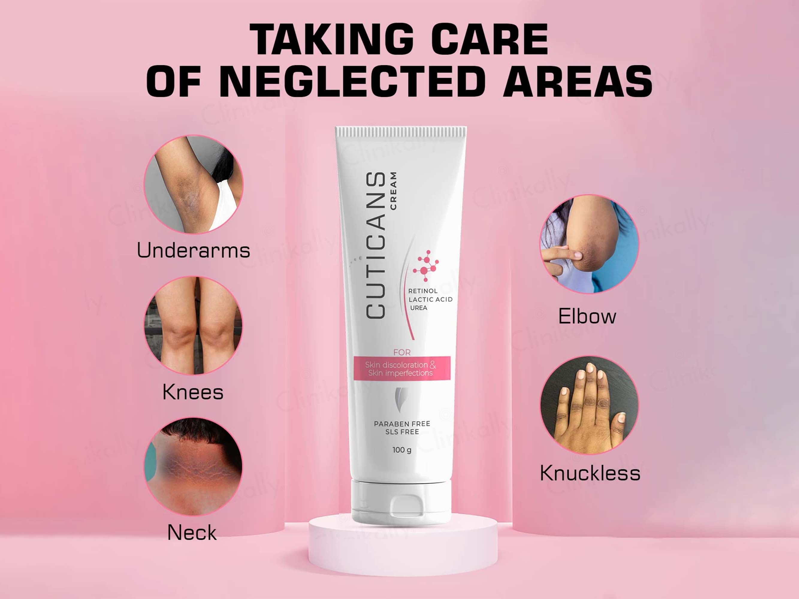 Cuticans Cream is a targeted depigmenting solution formulated to treat thick, darkened skin caused by conditions like Acanthosis Nigricans. Ideal for areas like knees, elbows, neck, and underarms, this cream combines urea, lactic acid, and retinol to deliver triple-action benefits: exfoliation, deep moisturization, and skin tone correction. With nourishing oils like almond, jojoba, and tea tree, Cuticans Cream soothes and restores skin texture. It is color-free, paraben-free, and SLS-free—making it safe for long-term daily use on all skin types.