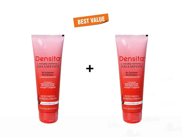 Densita Everyday Clarifying Shampoo is a gentle, sulfate- and paraben-free formula designed to cleanse while preserving hair health. Enriched with Hydrolyzed Keratin, Vital Amino Acids, Procapil, and Argan Oil, this shampoo strengthens from root to tip, promoting healthier, thicker-looking hair. Ideal for daily use, it restores scalp balance, prevents hair loss, and is safe for color-treated hair. With a pH-balanced base, Densita Everyday Clarifying Shampoo offers a refreshing cleanse without compromising on nourishment.