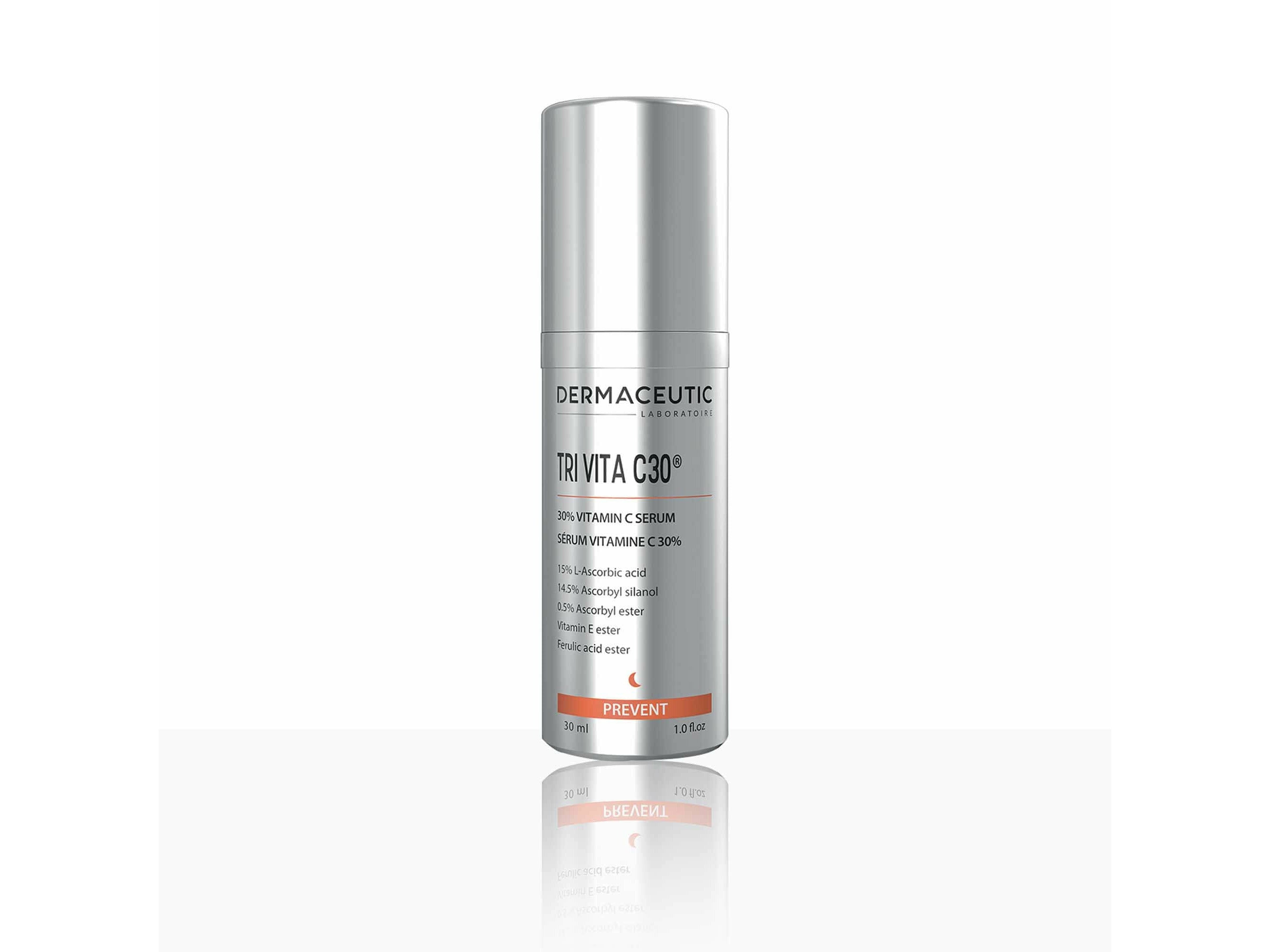 Dermaceutic Tri-Vita C30 Serum is a powerful serum formulated with 30% vitamin C to rejuvenate and protect the skin.