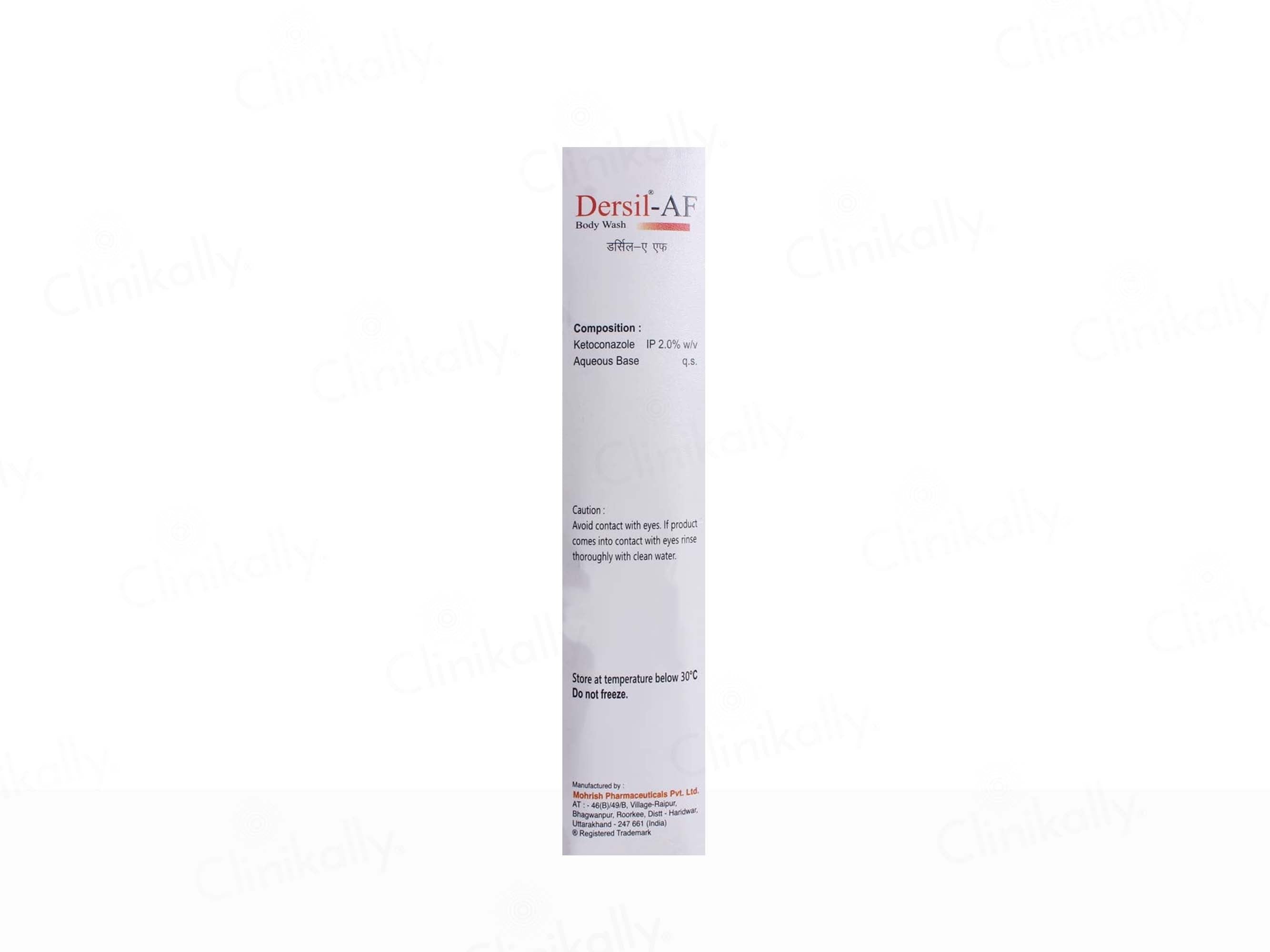 Dersil-AF Anti Fungal Body Wash is a potent solution designed to cleanse and combat fungal infections on the body. Formulated with antifungal agents, this body wash helps reduce itching, irritation, and discomfort caused by fungal conditions. It ensures a gentle yet effective cleanse, leaving the skin refreshed and feeling soothed. Ideal for those with conditions like athlete's foot or ringworm, it provides relief with each use, promoting healthier skin.