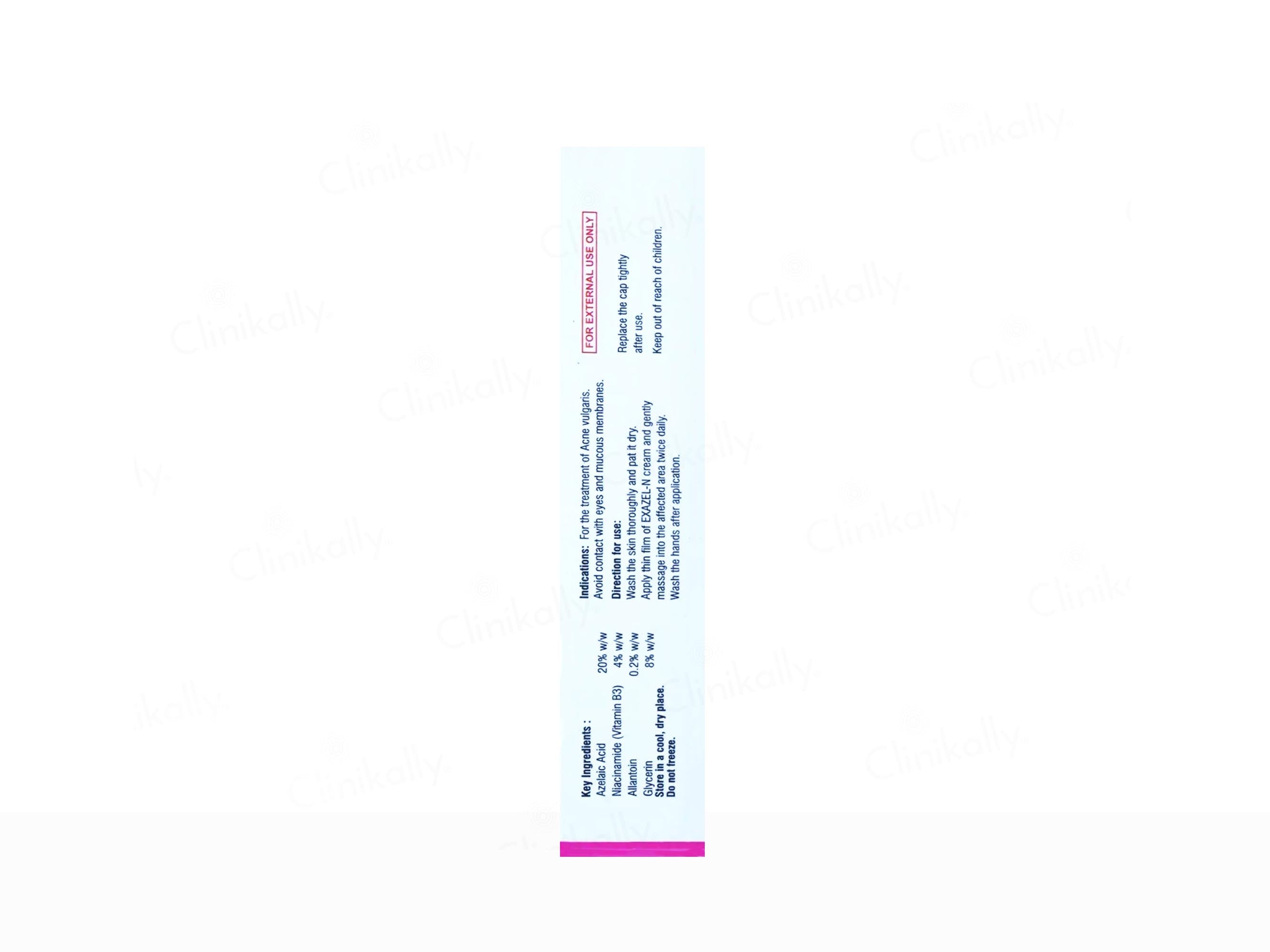 Exazel N Cream is a dermatologically approved formula designed for the effective treatment of acne vulgaris. Enriched with 20% Azelaic Acid, Niacinamide (Vitamin B3), allantoin, and glycerin, it works by reducing inflammation, unclogging pores, and targeting acne-causing bacteria. The cream also helps fade post-acne marks and evens out skin tone. Suitable for daily use, Exazel N soothes irritation, improves skin texture, and prevents future breakouts. Ideal for oily and acne-prone skin, it offers clear, calm, and healthy-looking skin with regular application.