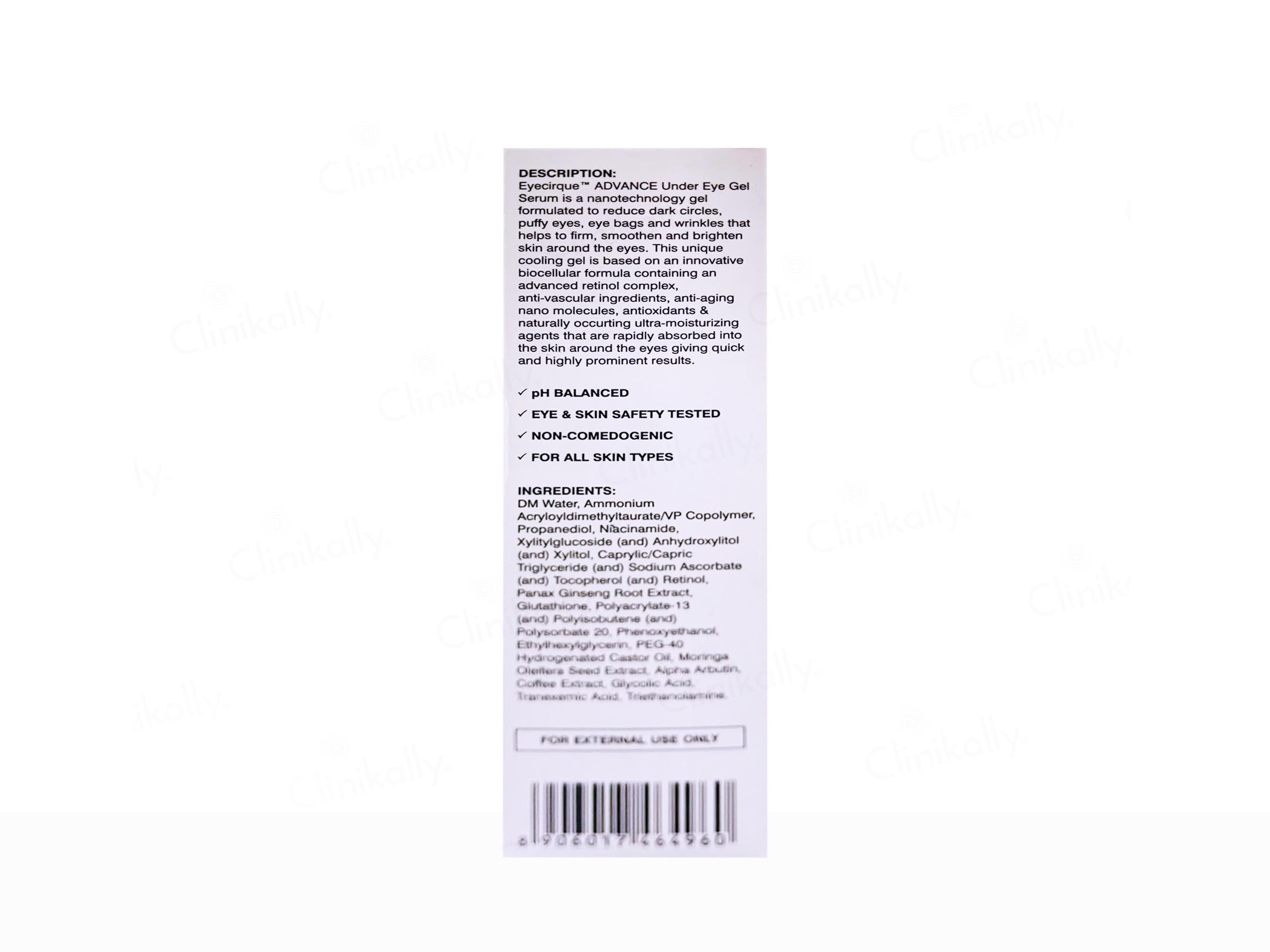 Eyecirque Advance Under Eye Gel Serum is a lightweight gel serum designed to reduce dark circles, puffiness, and fine lines around the under-eye area, providing a refreshed and youthful look.