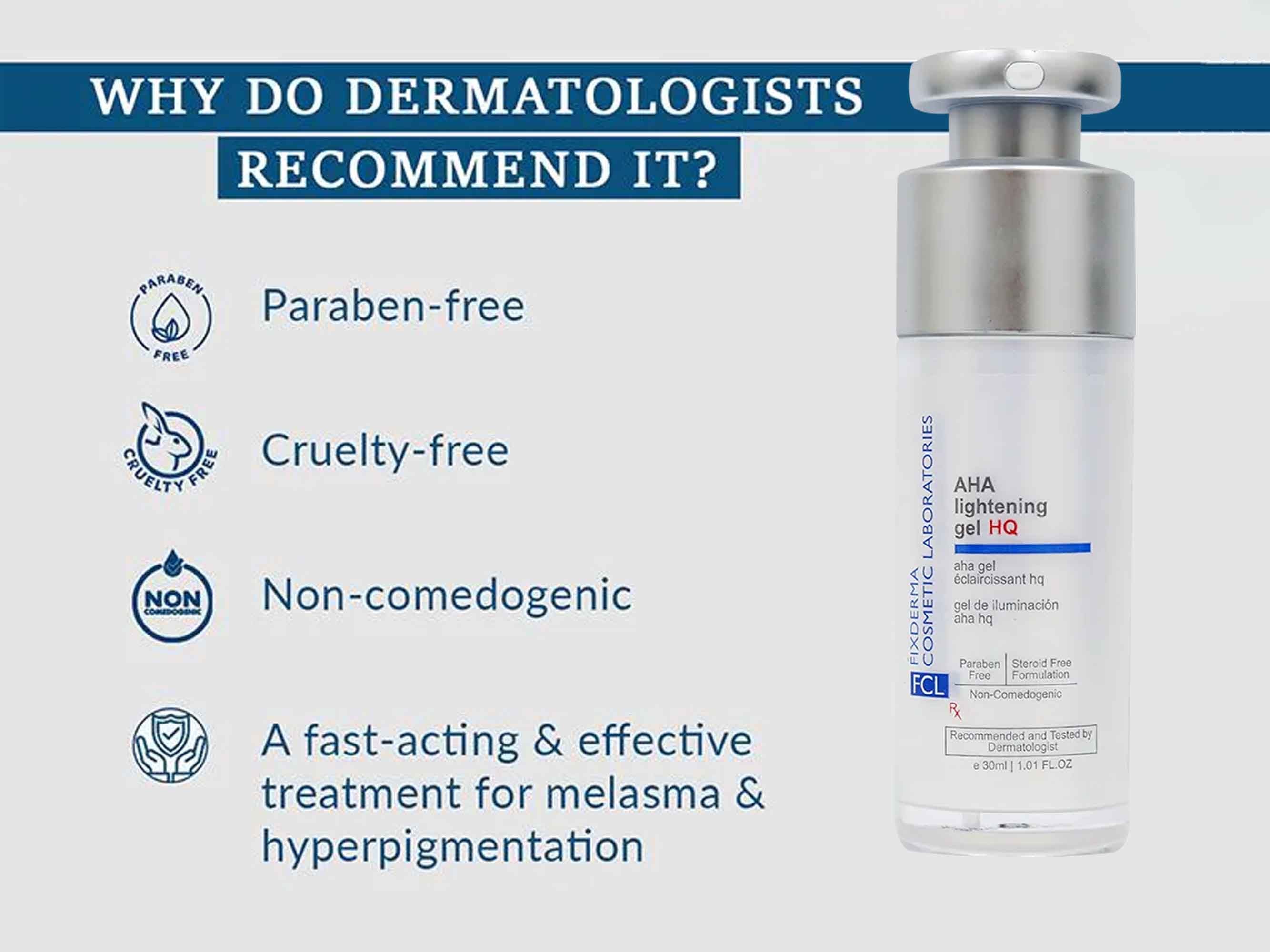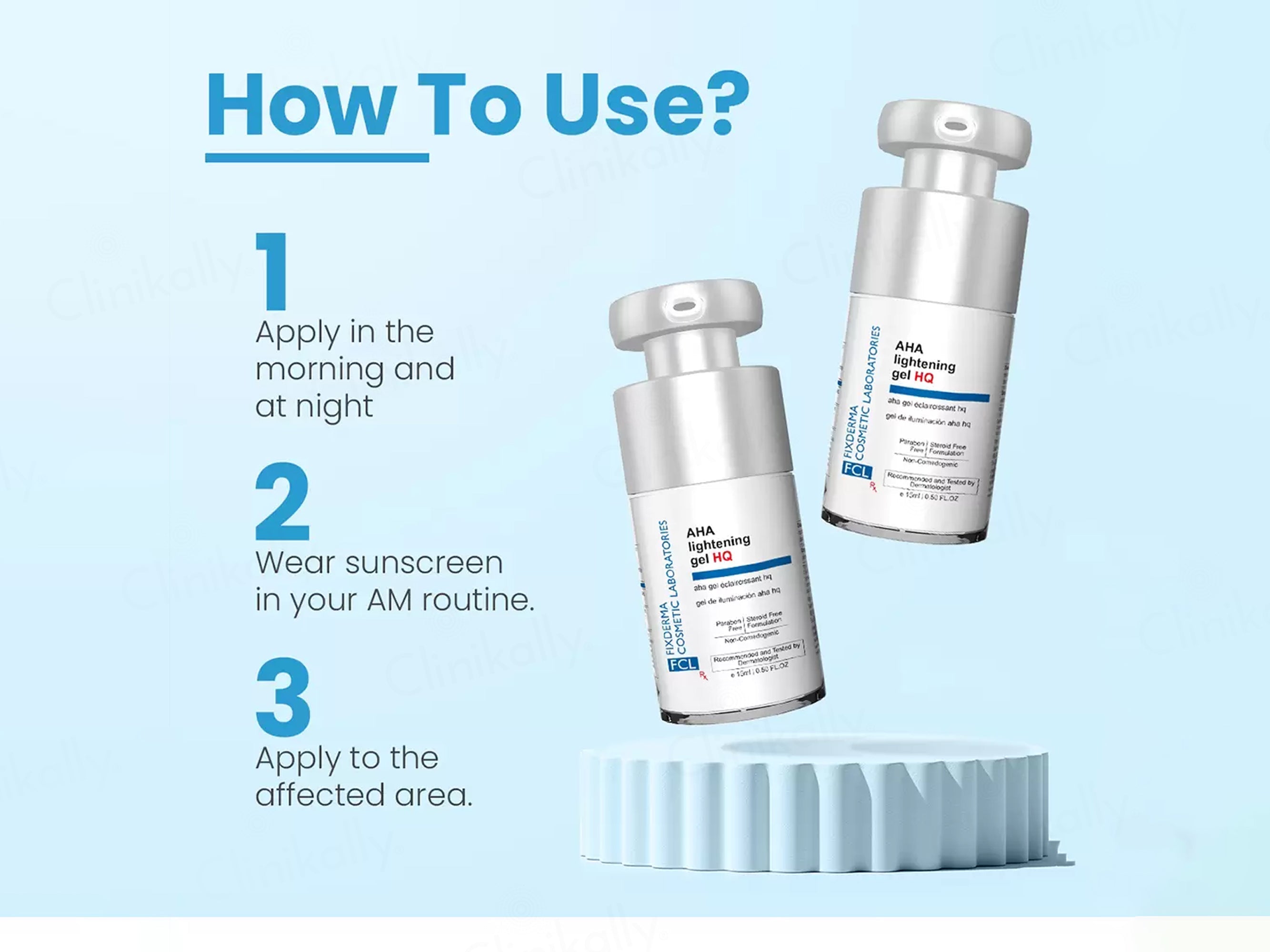 FCL AHA Lightening Gel HQ is an advanced skincare formulation designed to lighten dark spots, even out skin tone, and improve overall skin texture. Infused with Alpha Hydroxy Acids (AHA) and Hydroquinone (HQ), this gel effectively exfoliates dead skin cells, reduces pigmentation, and promotes a brighter, more radiant complexion. Suitable for all skin types, it helps to enhance skin clarity and smoothness.