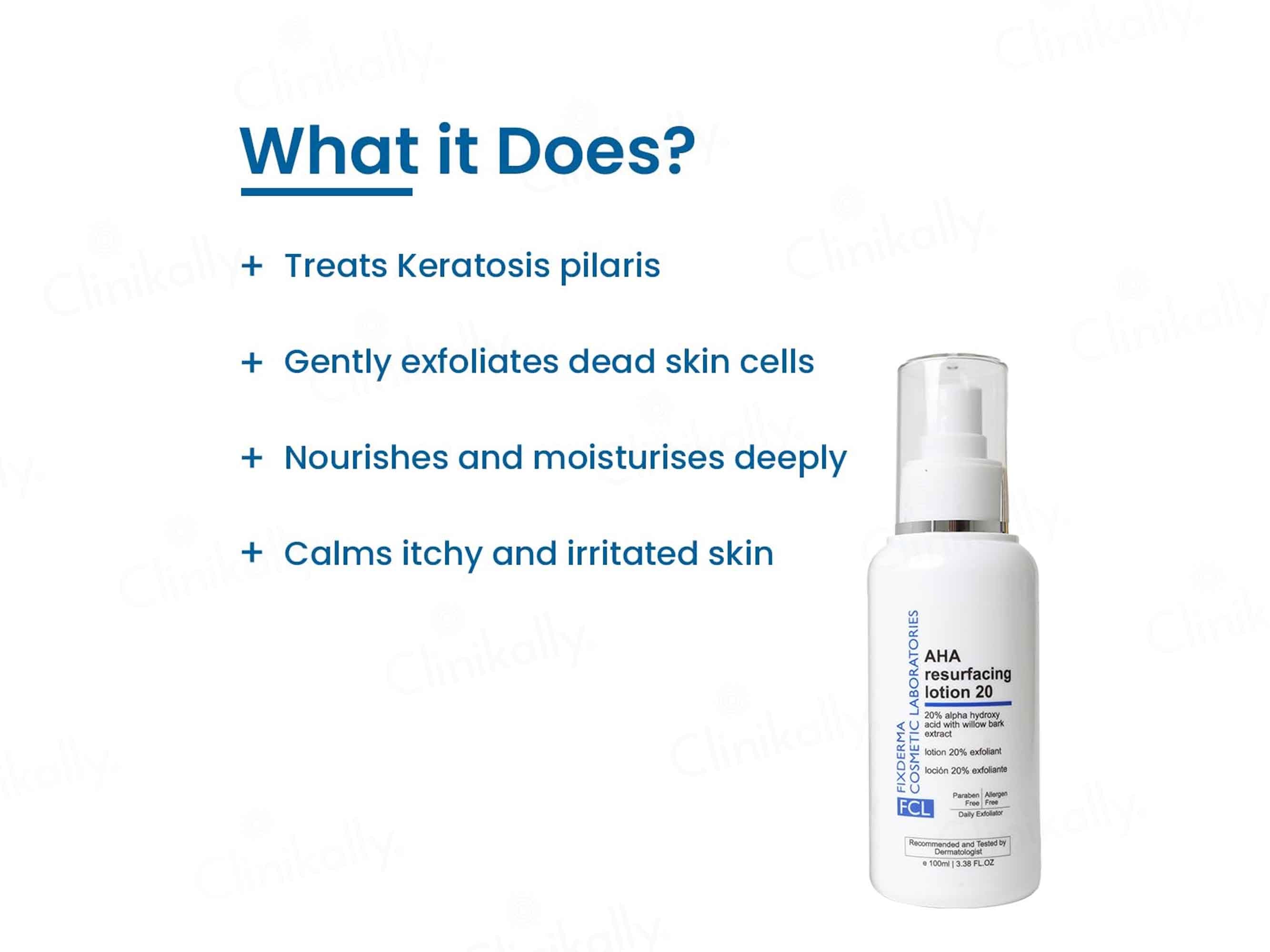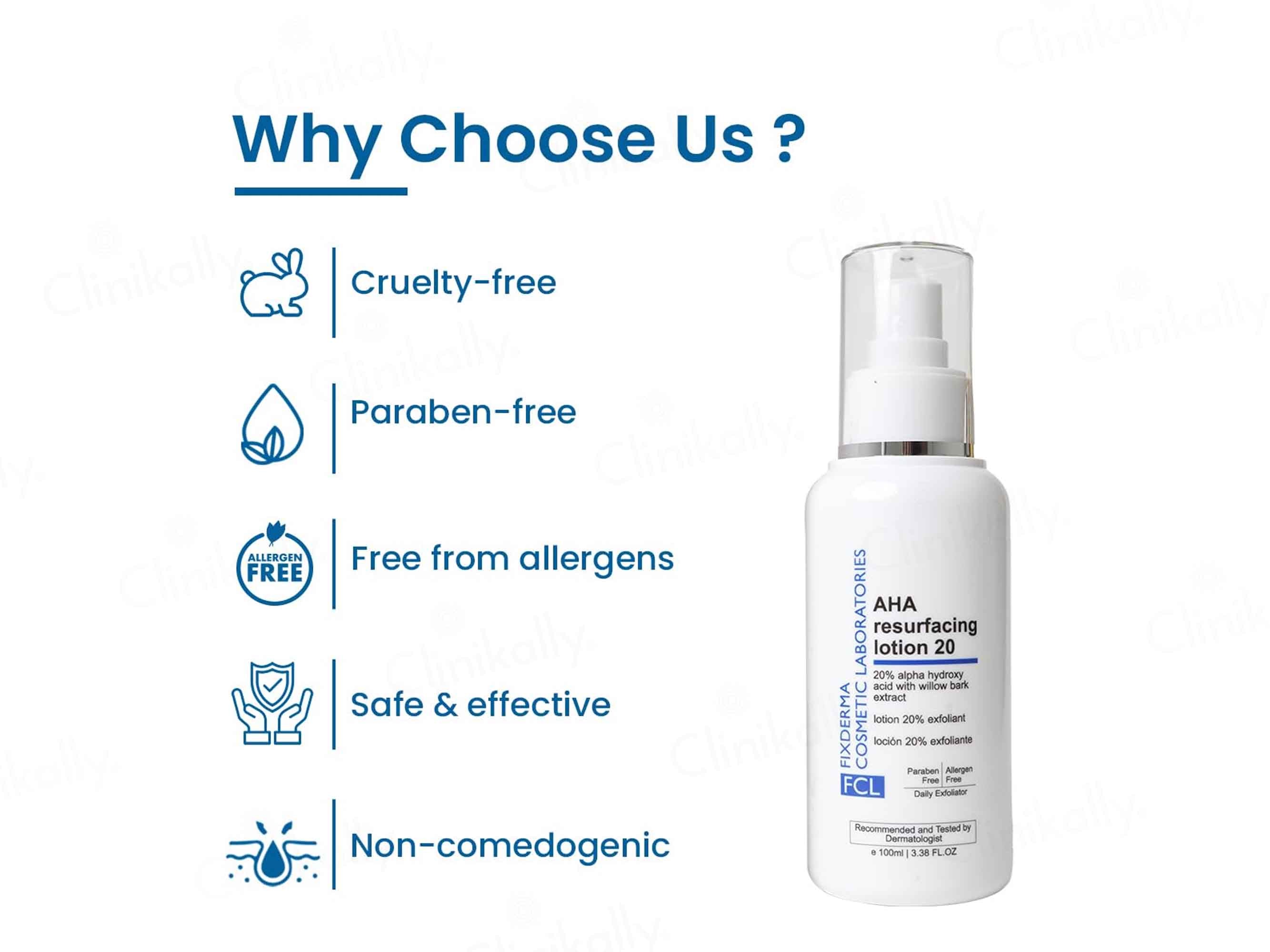 FCL AHA Resurfacing Lotion 20 is a powerful exfoliating treatment designed to refine skin texture and promote cell renewal. Formulated with 20% Alpha Hydroxy Acids (AHAs), including glycolic and lactic acid, this lotion effectively removes dead skin cells, reduces the appearance of fine lines, and brightens the complexion. Ideal for experienced AHA users, this high-strength lotion also helps to unclog pores and improve skin hydration, making it a potent choice for achieving smoother, more radiant skin.