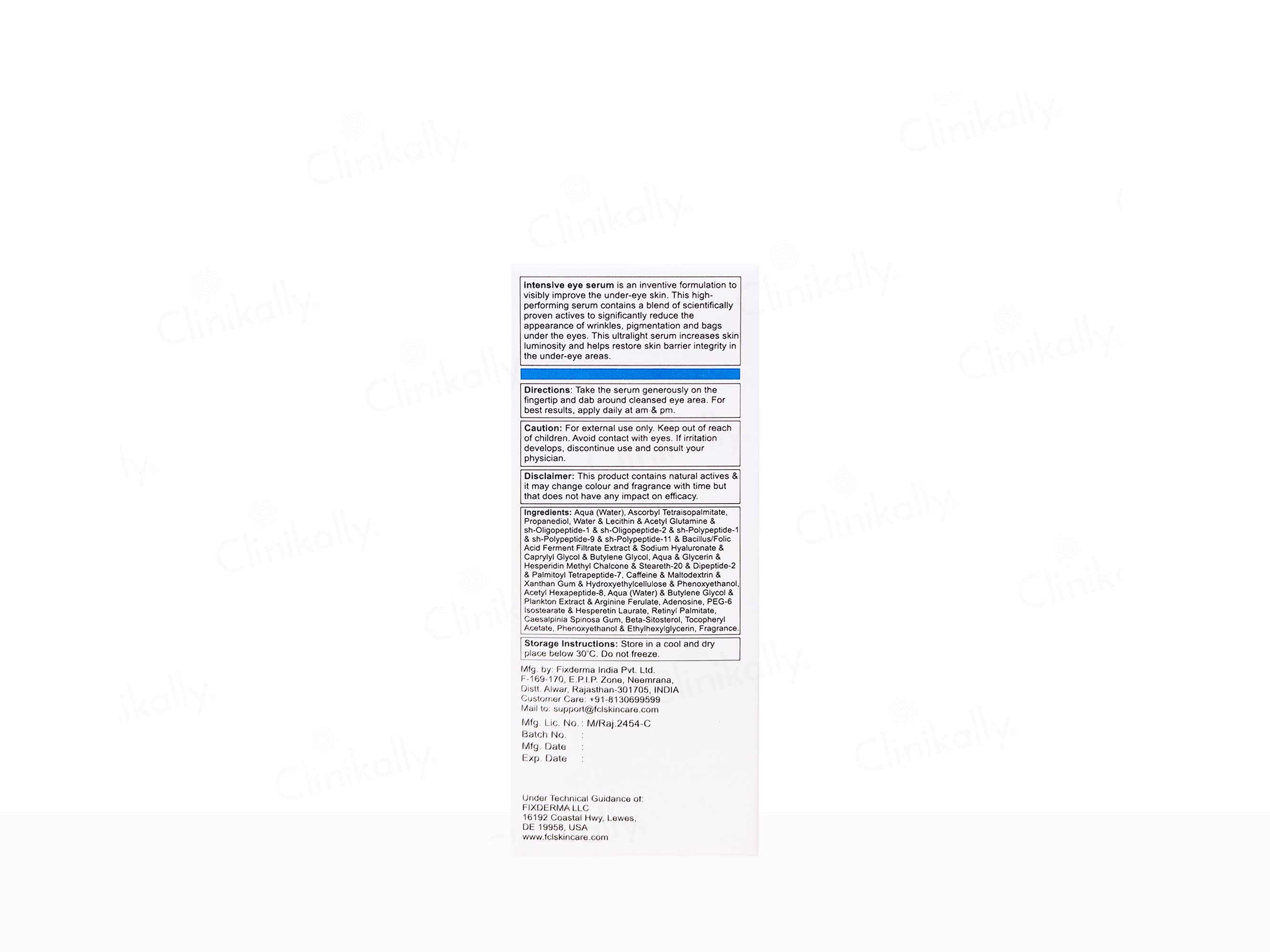 FCL Intensive Eye Serum is a targeted treatment designed to rejuvenate and revitalize the delicate skin around the eyes. Enriched with peptides, hyaluronic acid, and caffeine, this serum reduces the appearance of dark circles, puffiness, and fine lines. Its lightweight, fast-absorbing formula delivers deep hydration and boosts collagen production, leaving the eye area looking firmer, smoother, and more youthful. Suitable for all skin types, FCL Intensive Eye Serum is perfect for daily use to achieve brighter, more rested eyes.