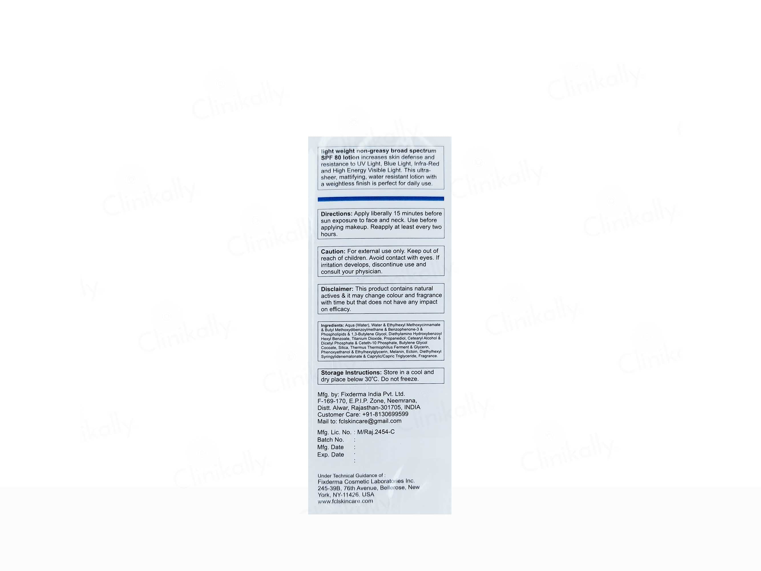FCL Light Weight Sunscreen Lotion SPF 80 PA++++ offers maximum protection against harmful UVA and UVB rays, preventing sunburn and skin damage. This lightweight, non-greasy lotion is designed for dry and sensitive skin, providing intense hydration while ensuring a smooth, matte finish. The broad-spectrum formula absorbs quickly into the skin, offering long-lasting protection and keeping the skin soft and moisturized. Perfect for daily use, it ensures your skin stays safe and healthy under the sun.