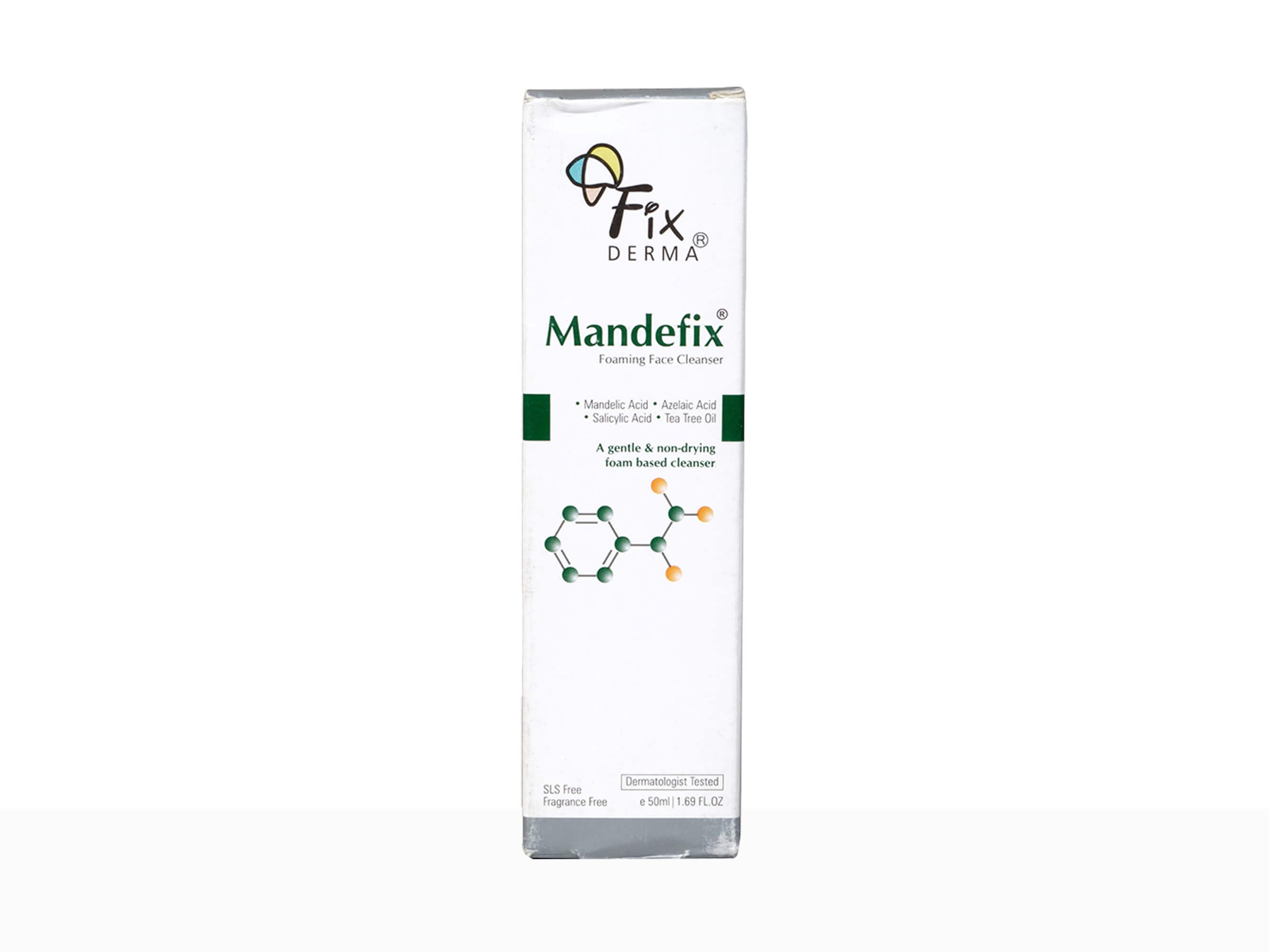 Achieve clearer, healthier skin with Fixderma Mandefix Foaming Face Cleanser, a gentle yet effective formula enriched with Mandelic Acid, Azelaic Acid, Salicylic Acid, and Tea Tree Oil. This dermatologist-tested cleanser deeply purifies pores, removes excess oil, and combats acne-causing bacteria without over-drying the skin. Its mild, non-irritating foam soothes inflammation, reduces blemishes, and promotes smoother skin texture. Free from SLS and fragrance, Mandefix Cleanser is ideal for oily, acne-prone, and sensitive skin, ensuring daily freshness, balance, and long-lasting clarity with every wash.