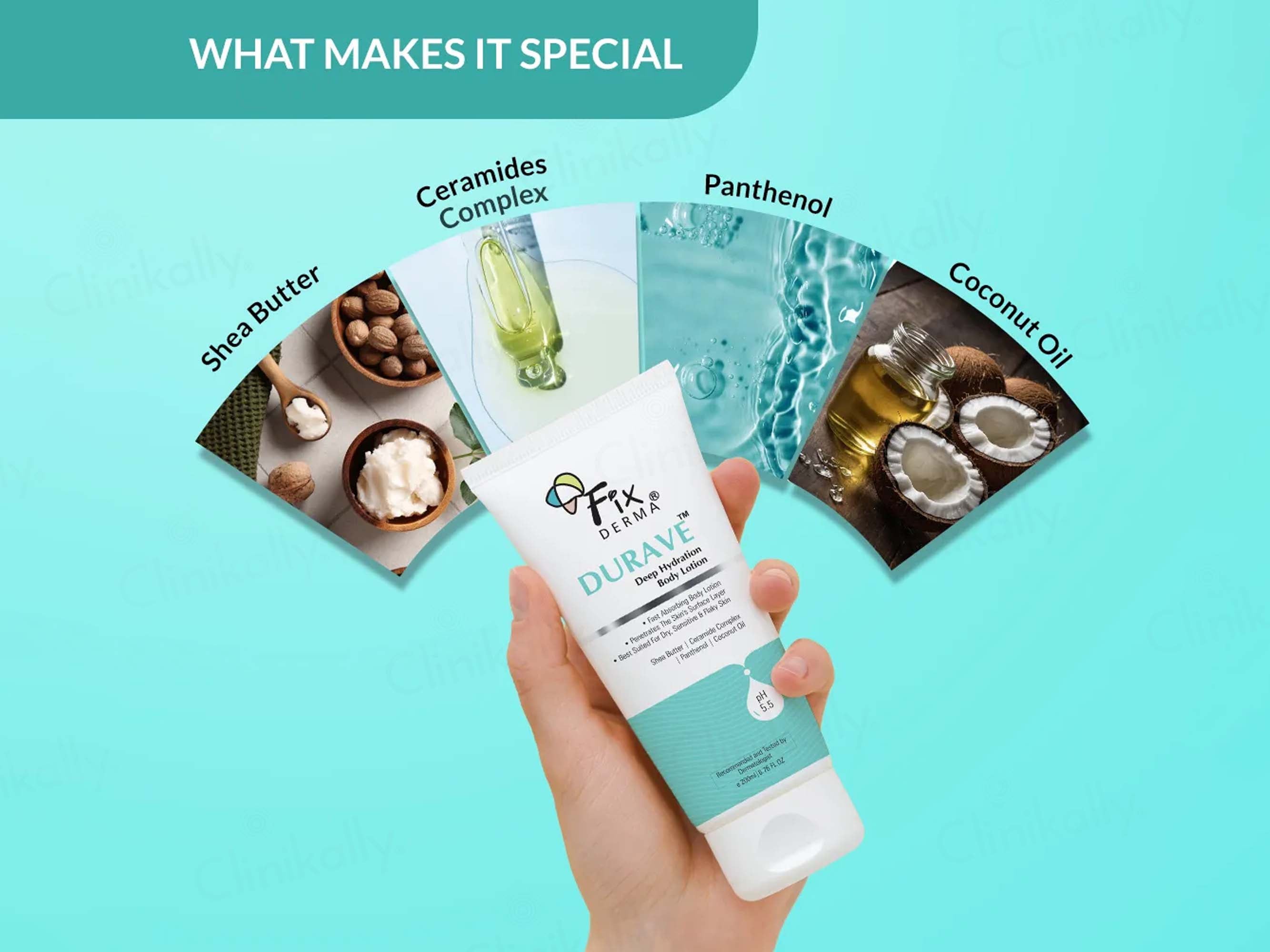 Fixderma Durave Deep Hydration Body Lotion is a non-greasy, lightweight formula designed to provide 24-hour intense hydration. Enriched with ceramides and shea butter, it helps maintain the skin's natural moisture balance, leaving it soft, healthy, and youthful-looking. This lotion absorbs quickly without leaving a greasy residue, making it ideal for daily use on all skin types.