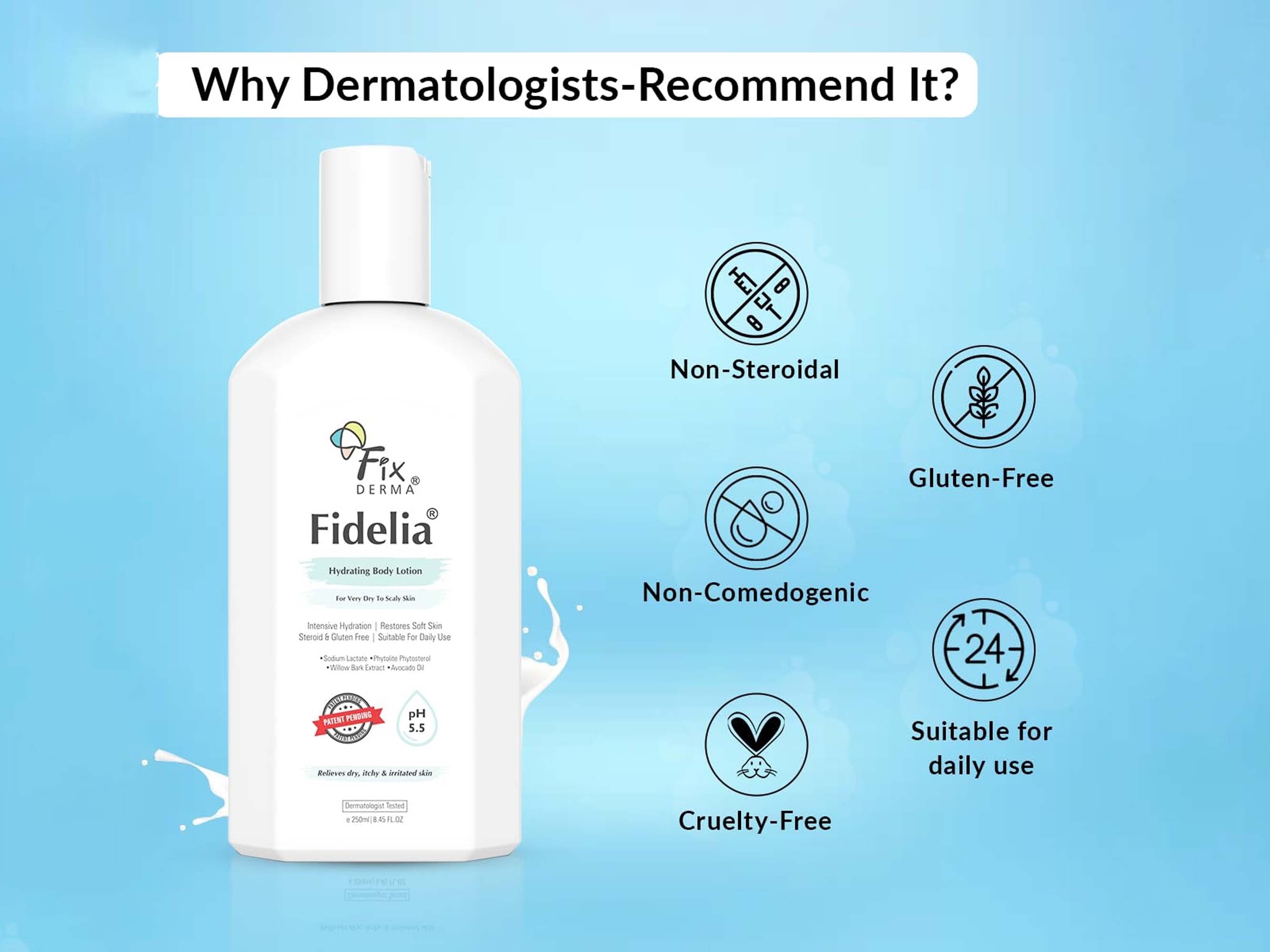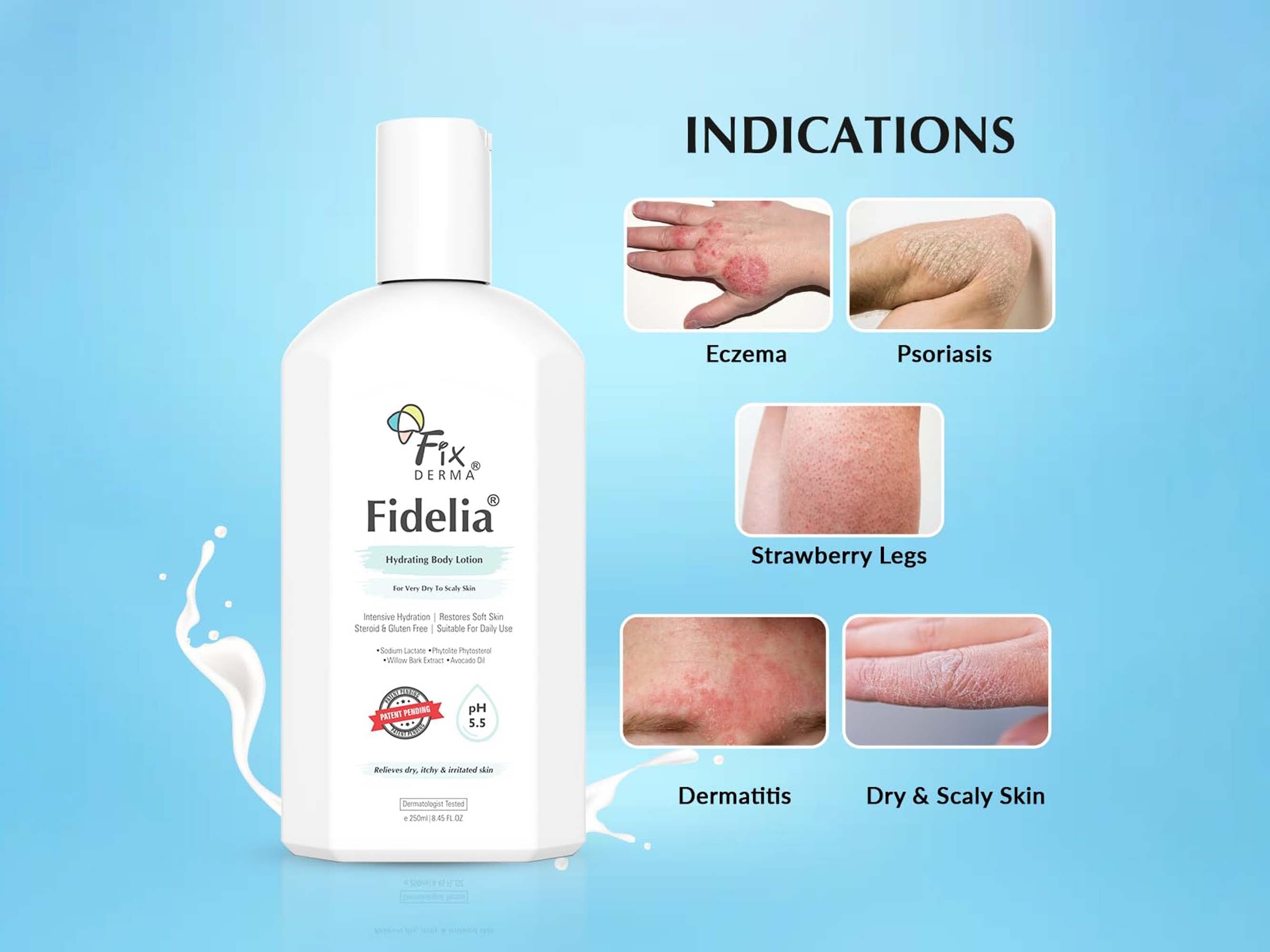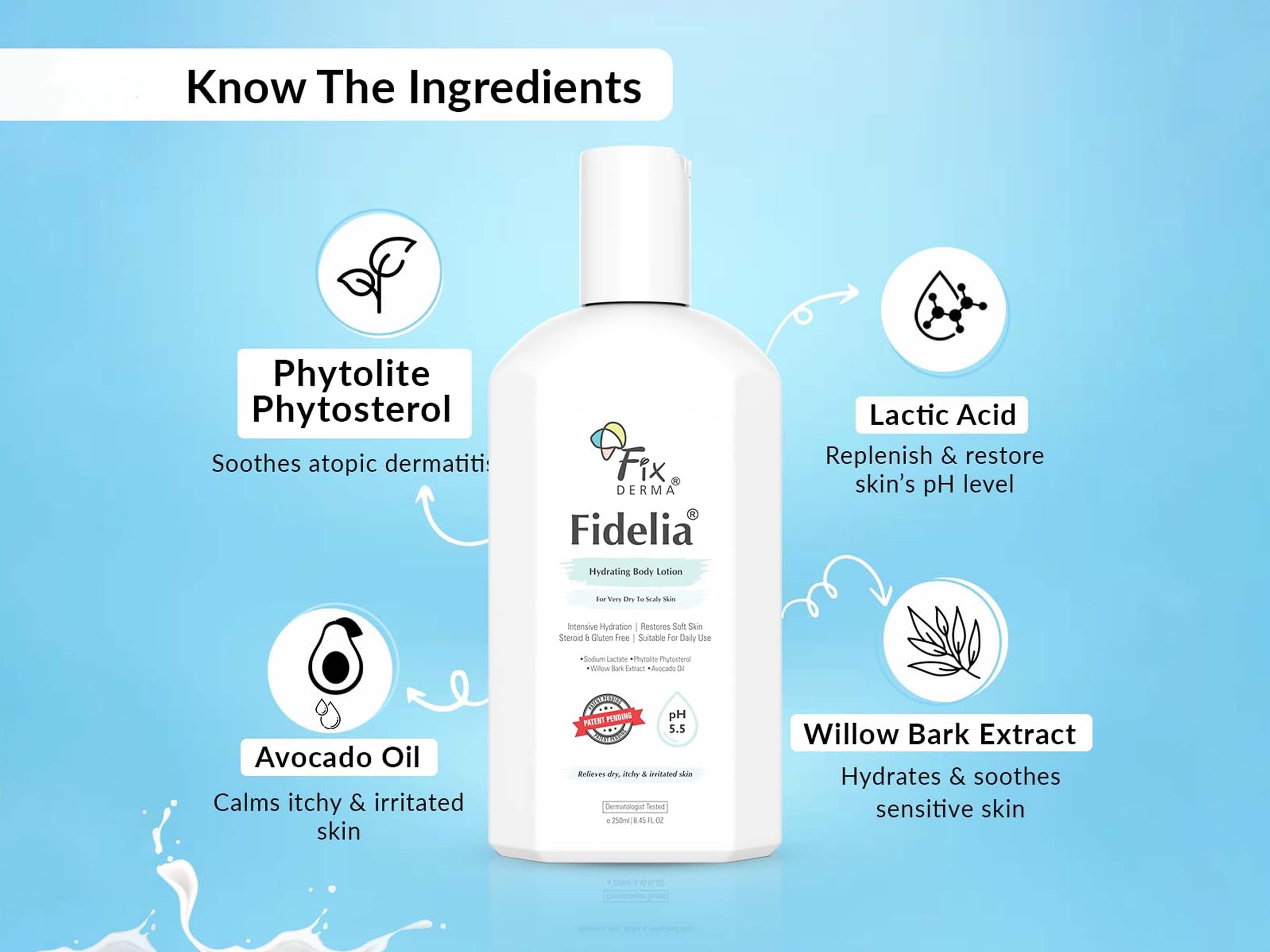 Fixderma Fidelia Hydrating Body Lotion is a luxurious, deeply moisturizing formula designed to rejuvenate and hydrate dry skin. Infused with a blend of nourishing ingredients, this body lotion provides long-lasting hydration and restores skin's natural suppleness. Its lightweight, non-greasy texture absorbs quickly, leaving the skin feeling soft, smooth, and refreshed.