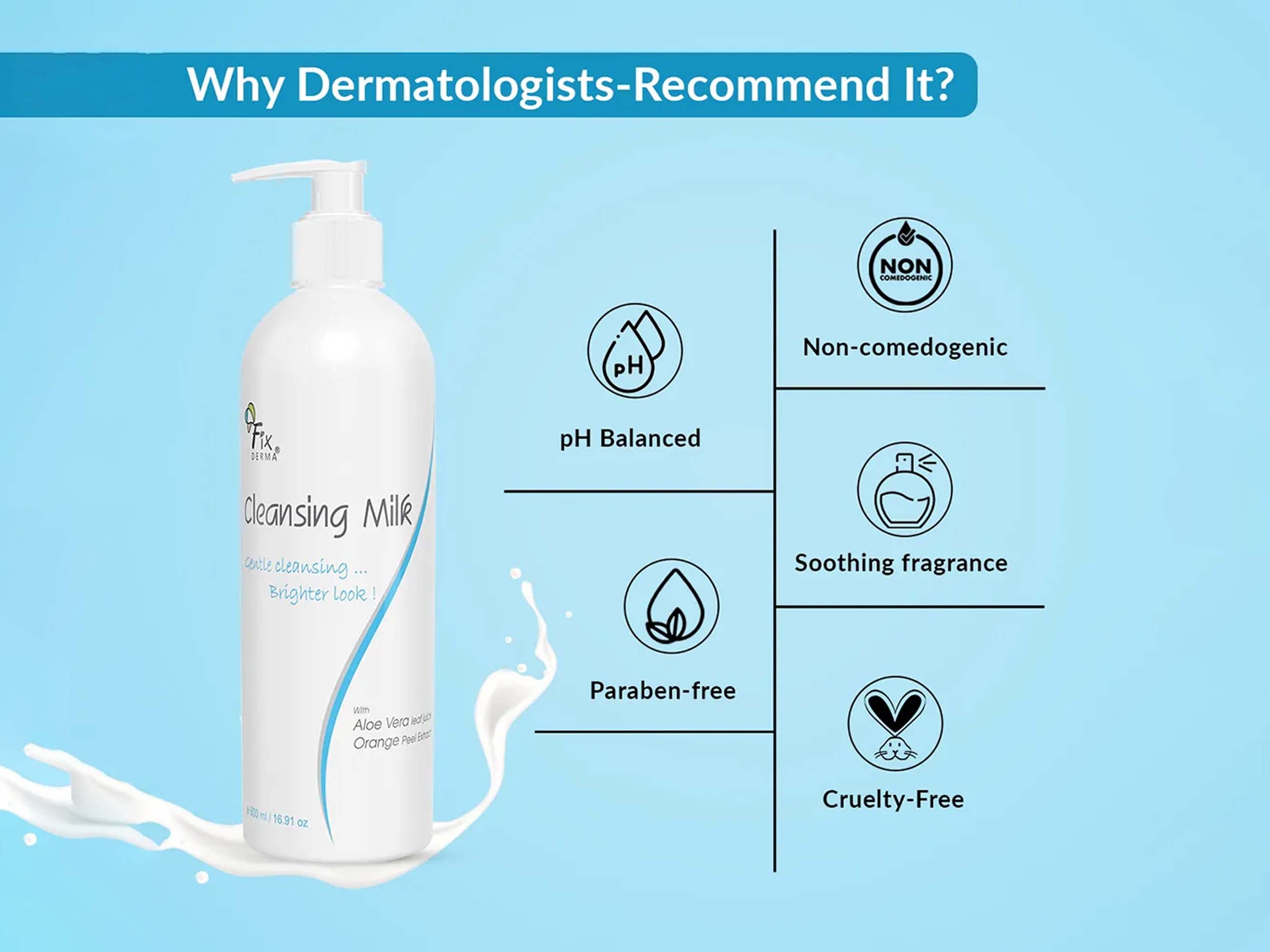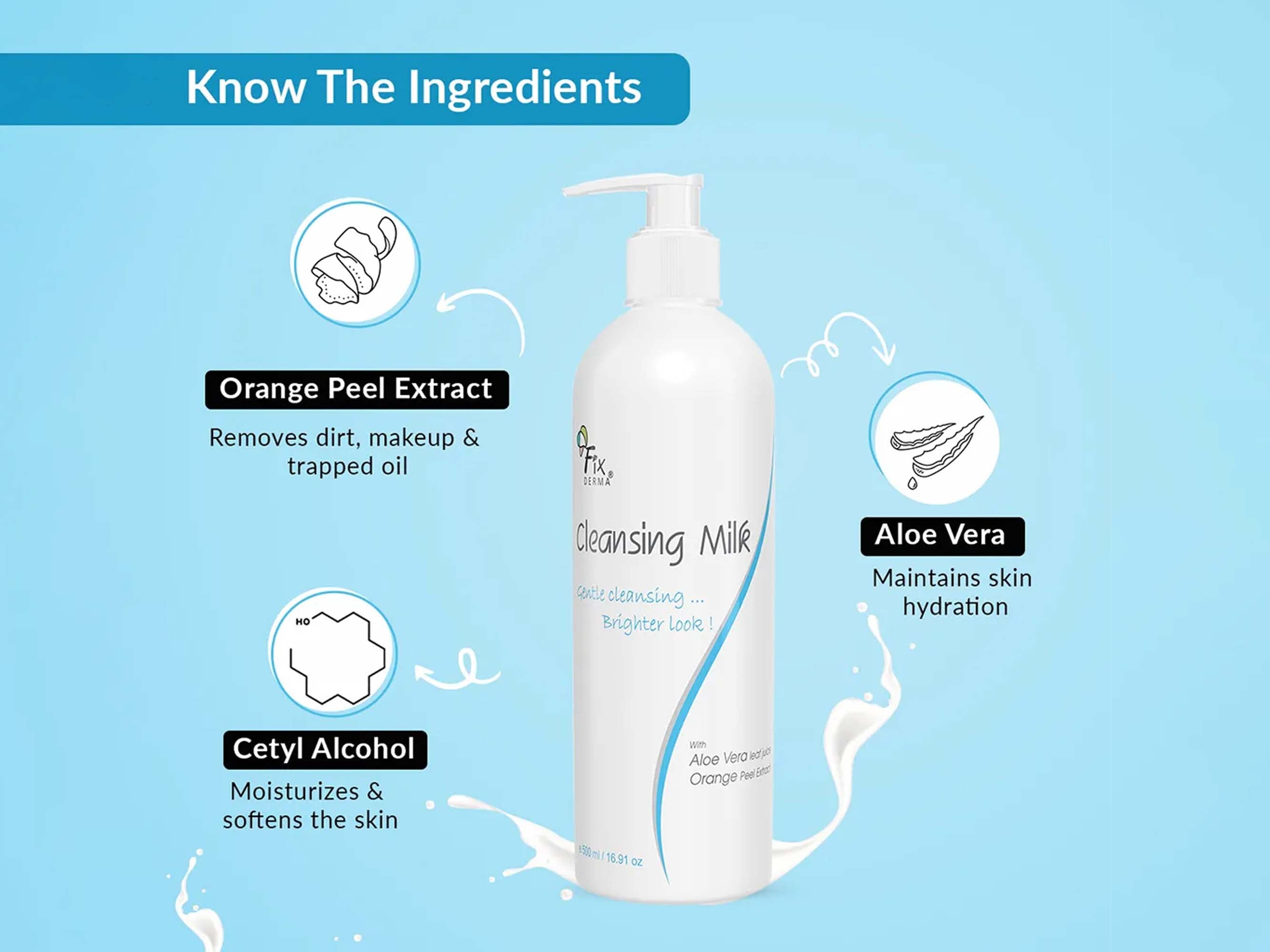 Fixderma Gentle Cleansing Milk is a soothing and effective cleanser designed to remove impurities, makeup, and excess oil without stripping the skin's natural moisture. Enriched with nourishing ingredients like Aloe Vera and Vitamin E, it gently cleanses while hydrating and soothing the skin. Suitable for all skin types, including sensitive skin, this cleansing milk leaves the skin feeling soft, refreshed, and balanced.
