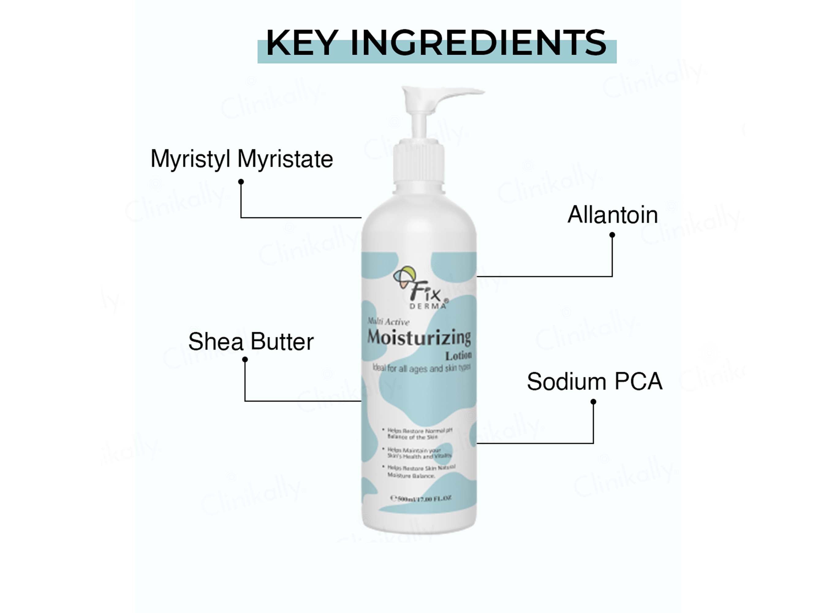 Fixderma Multi Active Moisturizing Lotion is a versatile skincare product designed to provide long-lasting hydration and nourishment. Its unique formulation combines the benefits of natural extracts and advanced ingredients to improve skin texture, elasticity, and overall appearance. Suitable for all skin types, it helps restore the skin's natural moisture barrier, leaving it soft, smooth, and radiant.