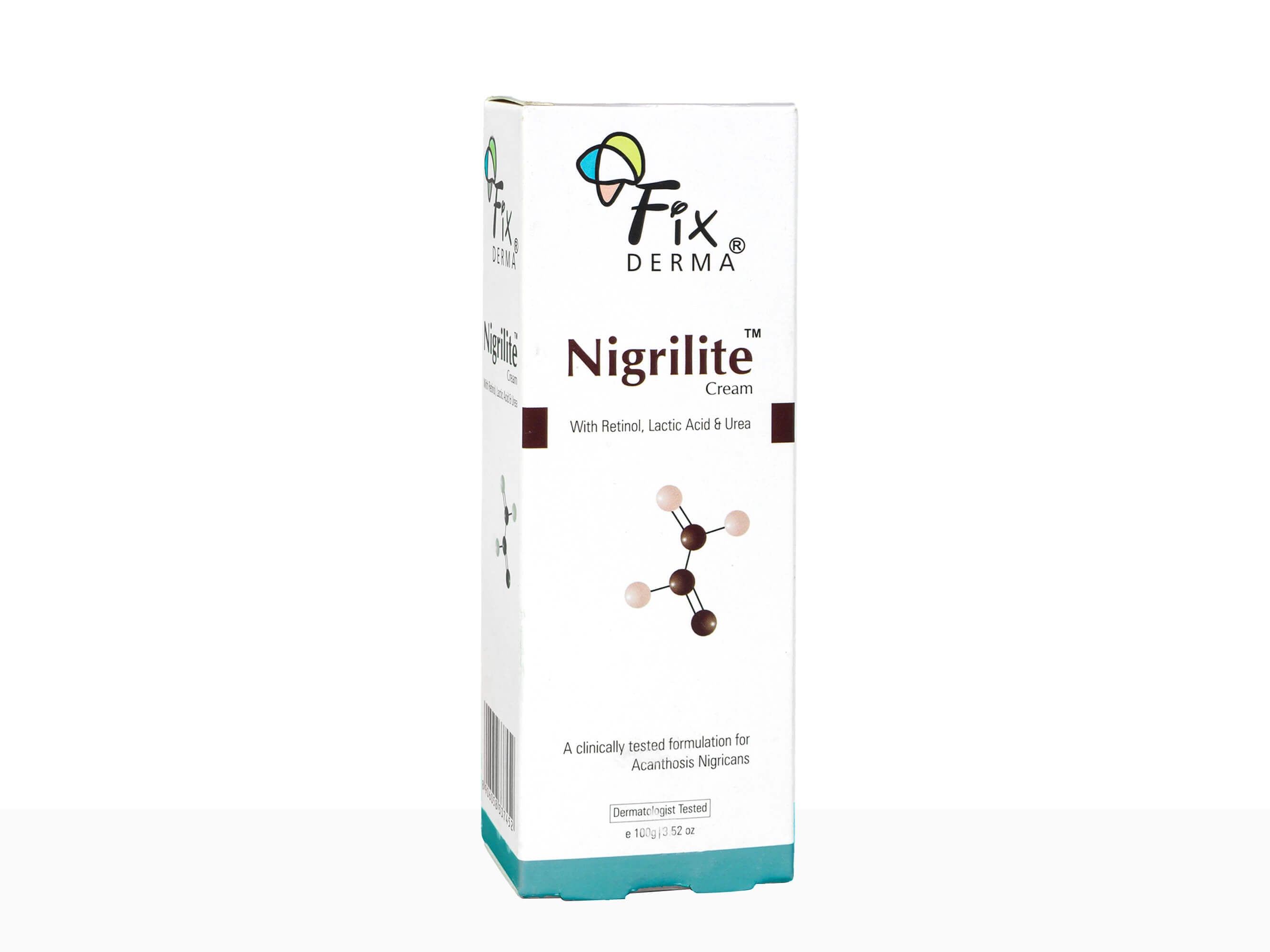 The key ingredients in Fixderma Nigrilite Cream are Retinol, Lactic Acid, Tea Tree Oil, and Urea.