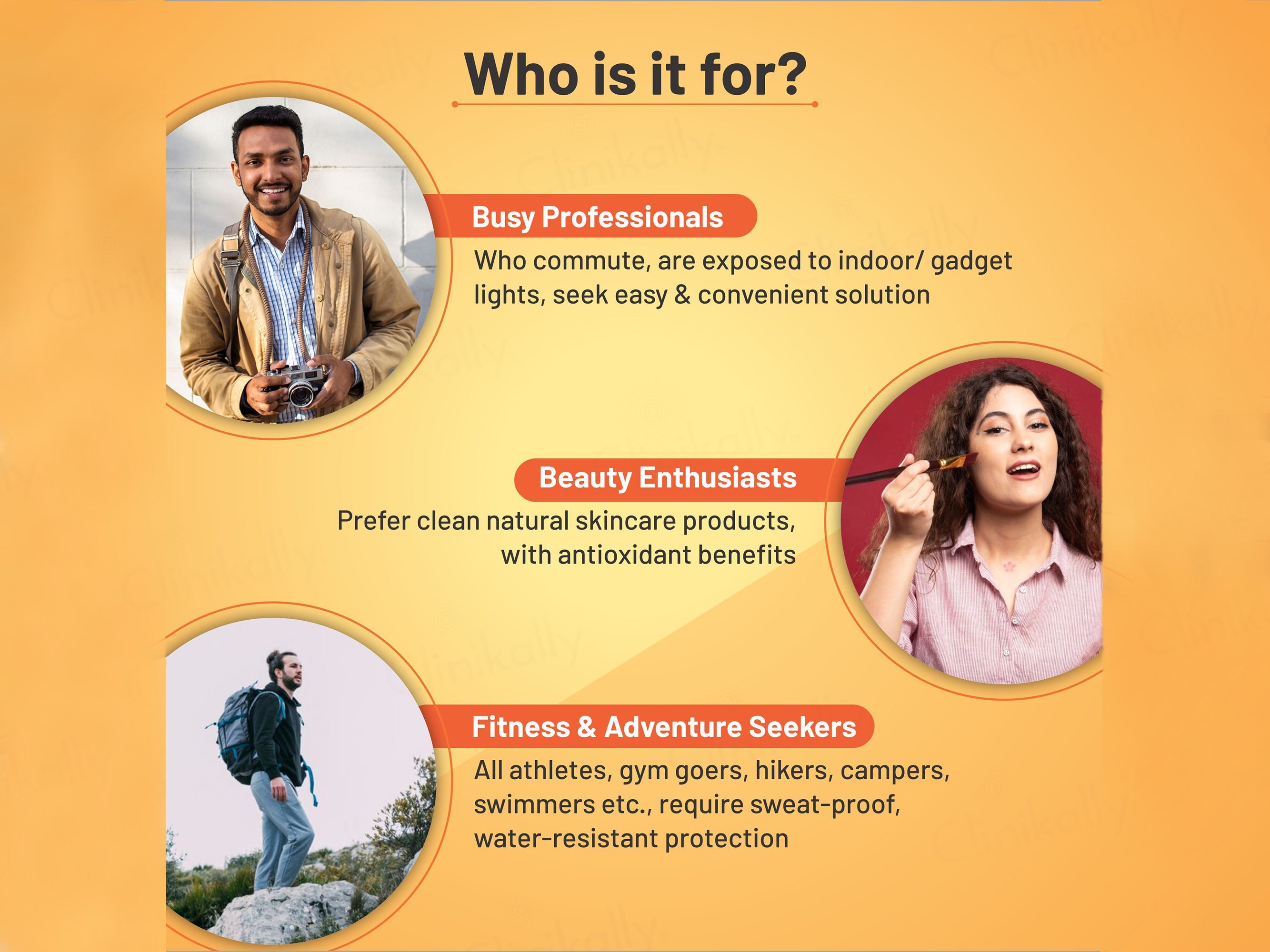 The key benefits include reducing tanning, promoting brighter and more uniform skin tone, reducing fine lines, and offering protection against UV rays and photoaging.