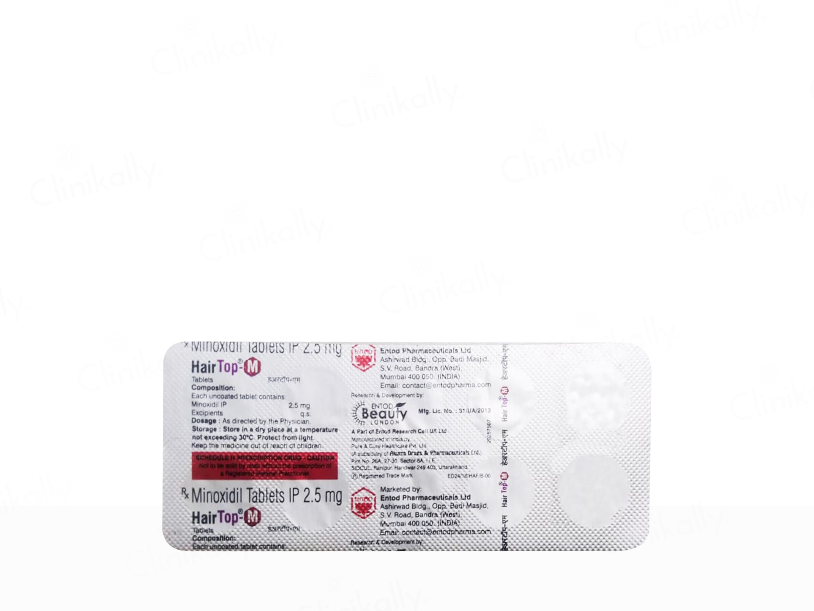 HairTop-M Tablet contains Minoxidil, a well-known medication used for treating hair loss and promoting hair growth. This oral tablet works by increasing blood flow to the hair follicles, stimulating growth, and helping to prevent further hair loss. HairTop-M Tablet is typically prescribed by a physician to treat male and female pattern baldness. It is essential to follow the dosage as directed by a medical professional for optimal results.