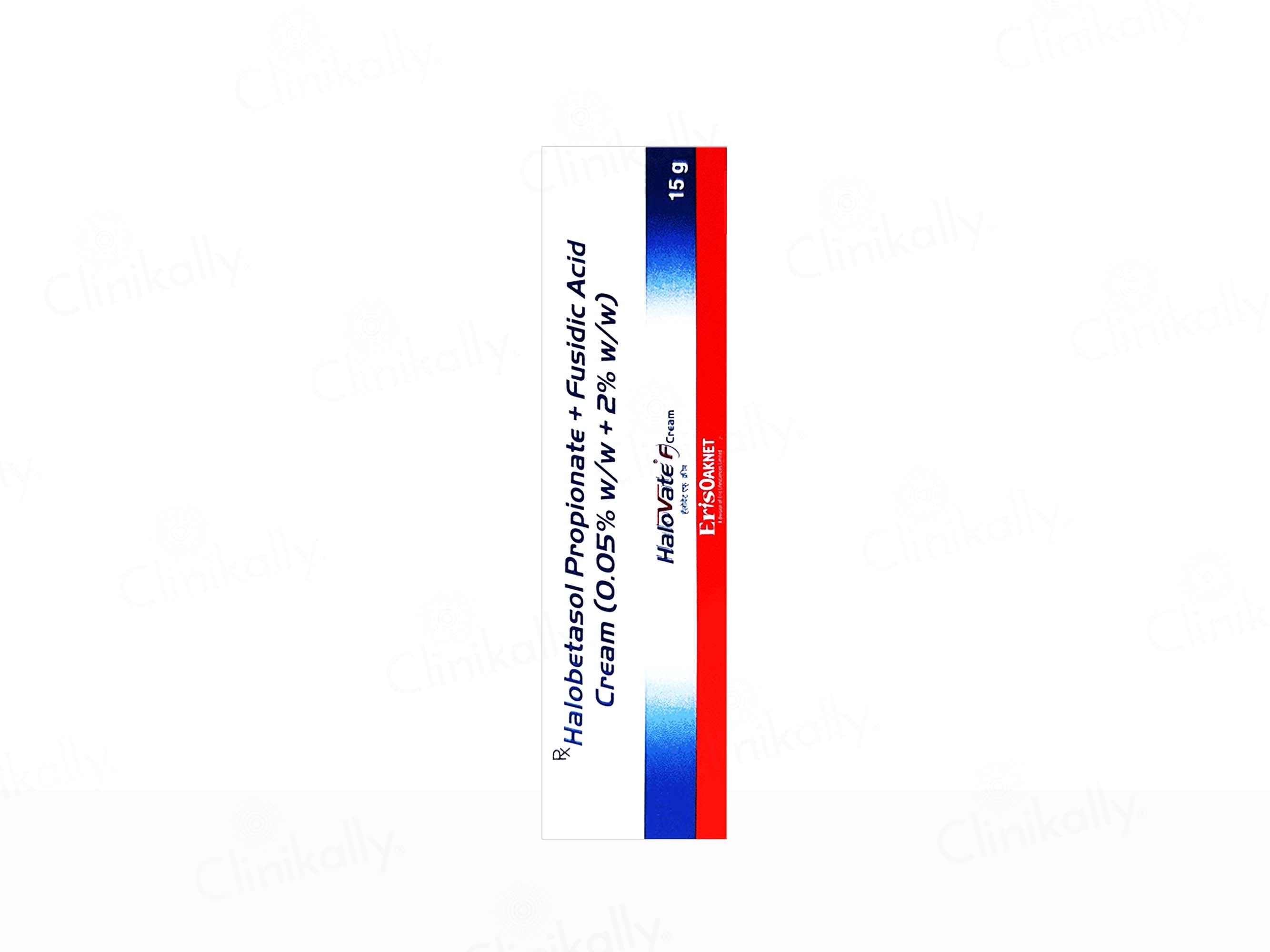 Halovate-F Cream is a prescription topical medication combining Halobetasol Propionate 0.05% and Fusidic Acid 2% to treat inflammatory skin conditions with a secondary bacterial infection. Halobetasol is a potent corticosteroid that reduces redness, swelling, and itching, while Fusidic Acid is a powerful antibiotic that targets bacterial growth on the skin. Together, they help manage eczema, dermatitis, and psoriasis with infection risk. Suitable for short-term use under medical supervision, Halovate-F provides fast and effective relief from flare-ups and irritation.