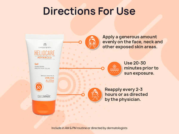 Heliocare Advanced Sunscreen Protector Solar Gel SPF 50 is a lightweight, invisible finish gel that provides high protection against UVA and UVB rays with SPF50.