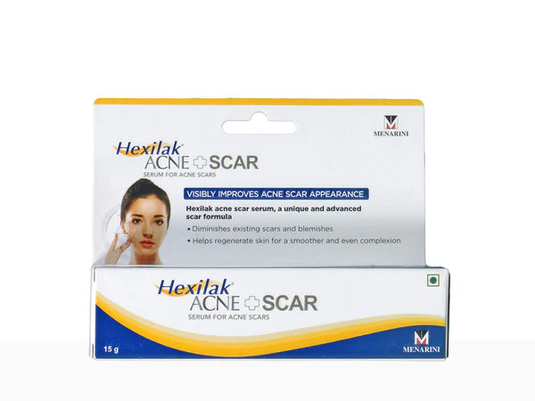 Hexilak Acne Plus Scar Serum is a potent anti-scar formula that flattens and lightens scars from surgery, cuts, burns, and insect bites. Enriched with vitamin C for photoreception benefits, it diminishes existing scars and hyperpigmentation, blending them seamlessly with your natural skin tone. Suitable for all skin types, this serum effectively reduces the visibility of scars and blemishes.