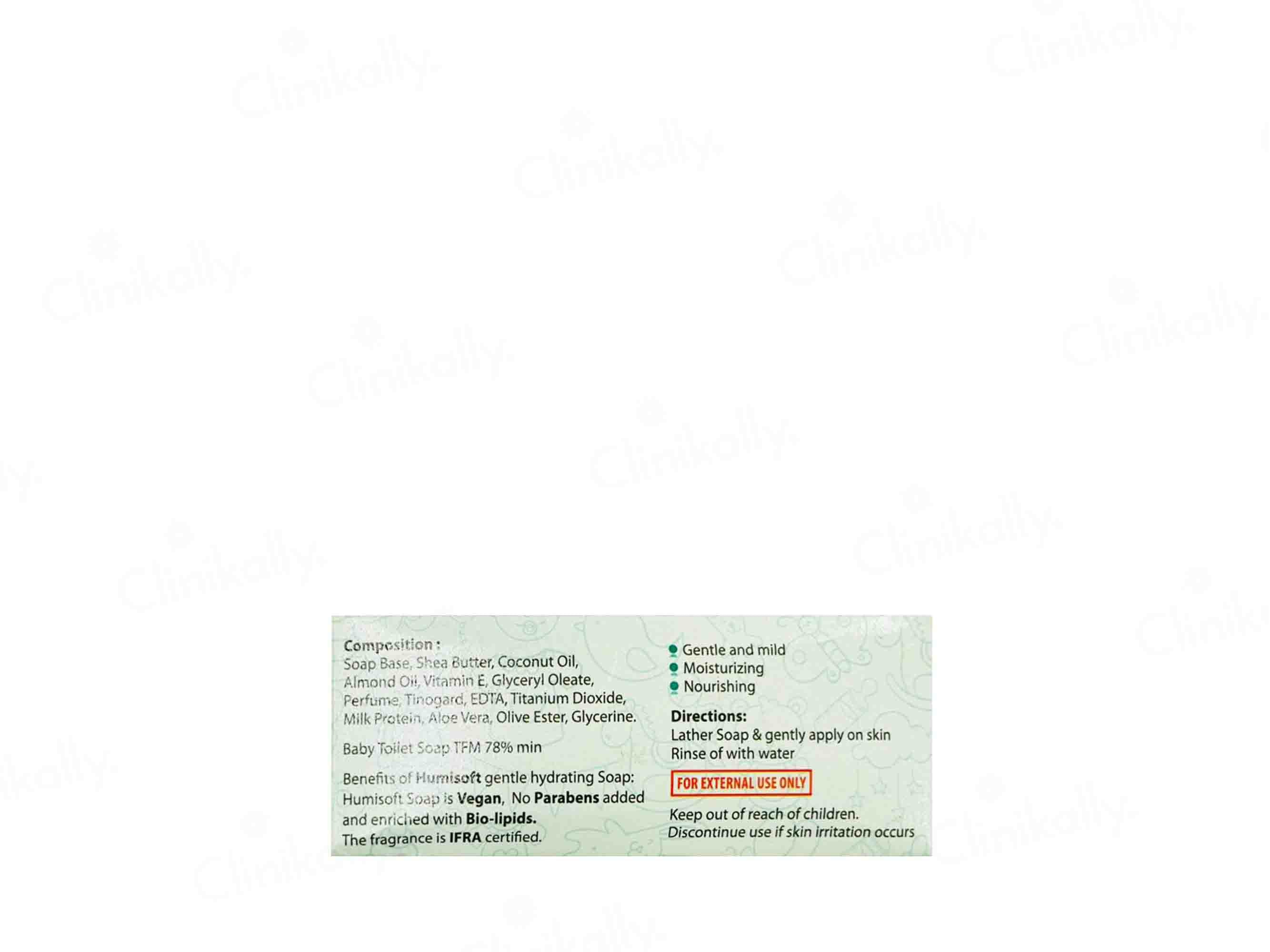 Humisoft Gentle Hydrating Soap is a moisturizing soap enriched with natural oils and bio-lipids, designed to gently cleanse and nourish the skin. It provides intensive hydration and contains no added parabens, with a Total Fatty Matter (TFM) of 78% minimum, indicating high quality.