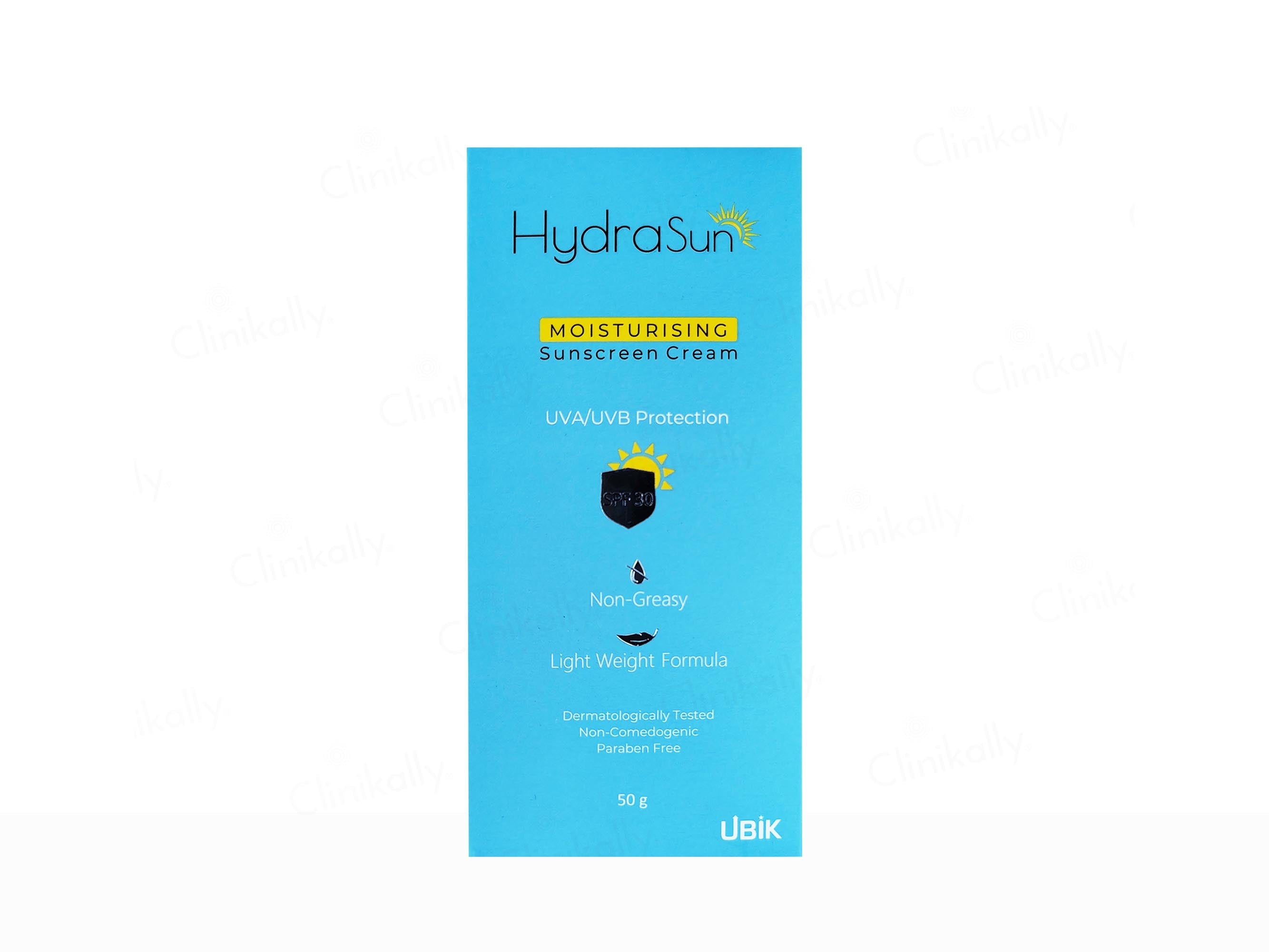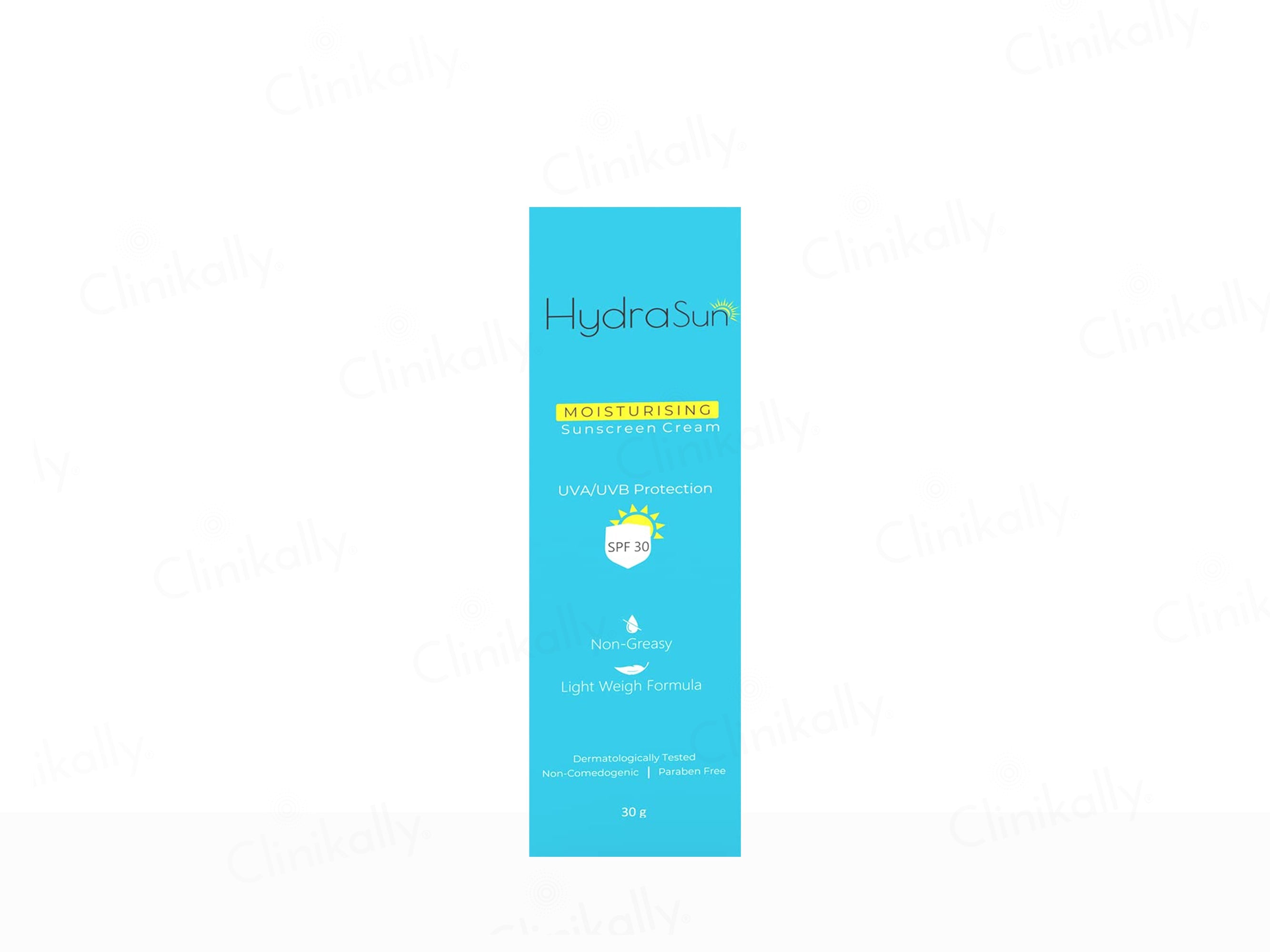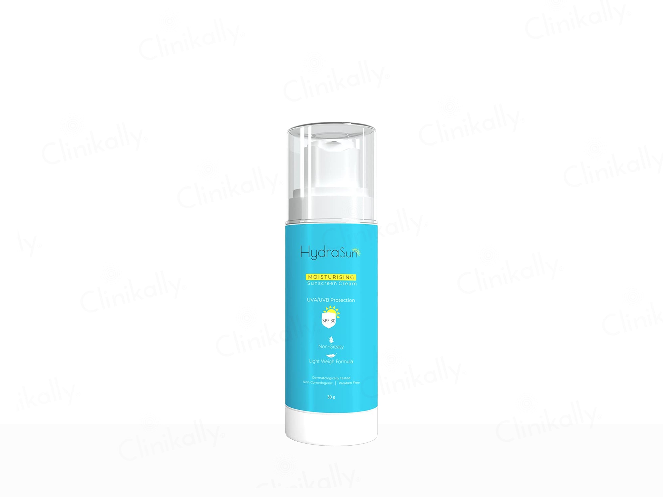 Hydrasun Moisturising Sunscreen Cream SPF 30 offers effective sun protection while keeping your skin hydrated and nourished. Its broad-spectrum formula shields against harmful UVA and UVB rays, preventing sunburn and skin damage. Enriched with moisturizing ingredients, this sunscreen cream helps maintain the skin's moisture balance and sin barrier, leaving it soft, supple and smooth. Suitable for all skin types, it is perfect for daily use to protect and care for your skin under the sun.