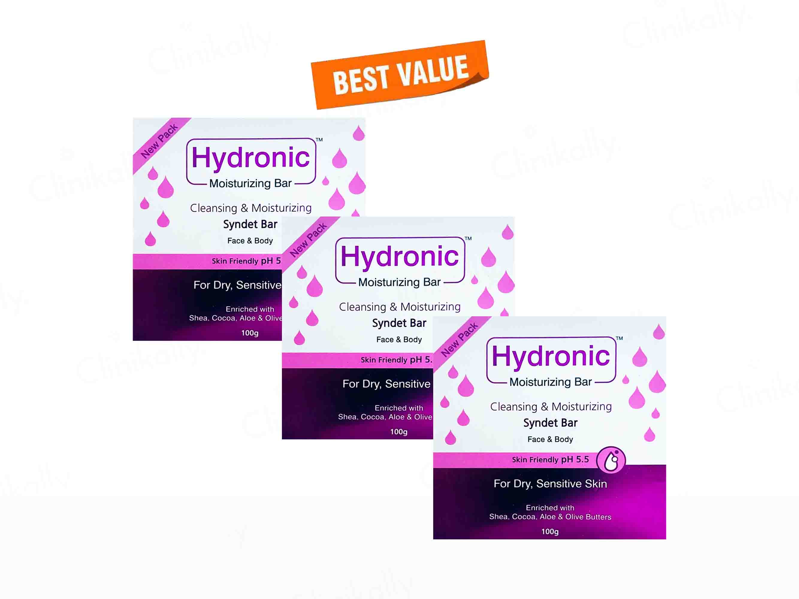 Hydronic Moisturizing Bar is a premium cleansing bar enriched with natural butters like shea, cocoa, aloe, and olive. It gently cleanses the skin without stripping away natural oils, leaving it soft, smooth, and hydrated. The bar maintains a skin-friendly pH of 5.5, making it suitable for all skin types, including sensitive and dry skin.