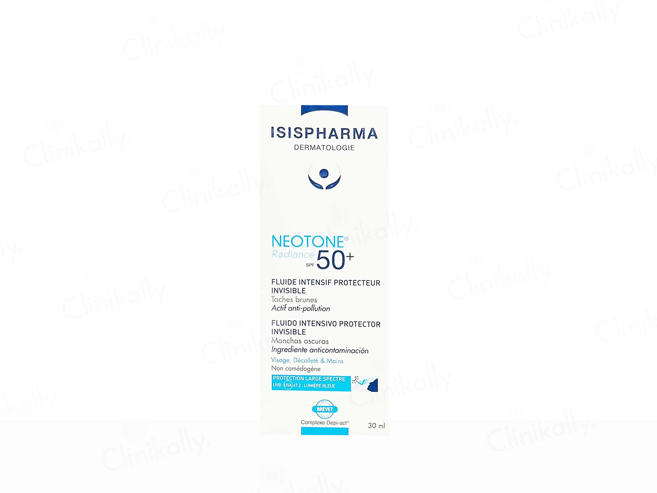 Isispharma Neotone Radiance SPF 50+ is an intensive protective fluid that shields skin from UVA/UVB rays and environmental pollutants. Enriched with diacetyl boldine, liquorice extract, and niacinamide, this sunscreen also promotes de-pigmentation, hydrates, and enhances skin’s natural defenses. This cream addresses pigmentation issues, smooths skin texture, and provides a radiant, clear complexion. Ideal for daily use, it leaves skin feeling nourished and plump.