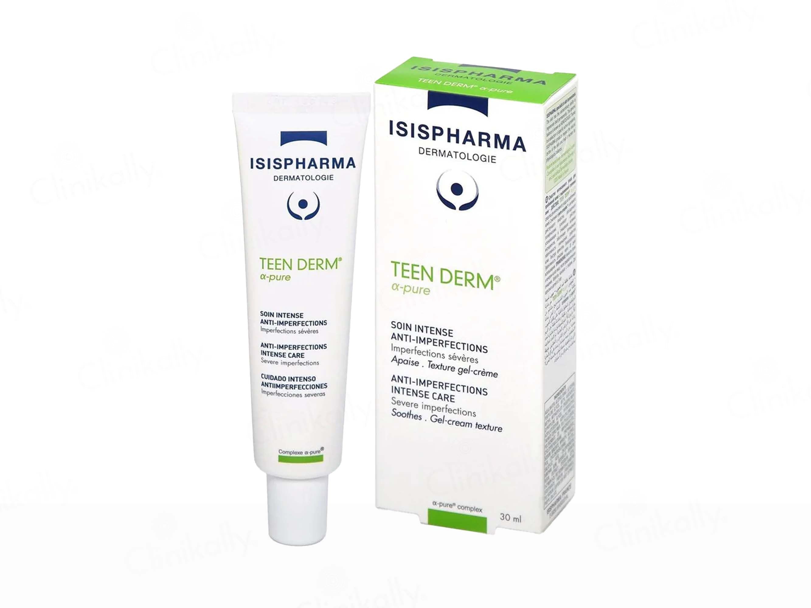 Isispharma Teen Derm Alpha-Pure Anti-Imperfections Intense Care is a targeted skincare solution designed to reduce severe imperfections while soothing and rebalancing the skin with its α-PURE complex. The formula combines exfoliating and purifying agents like Salicylic Acid and Alcohol Denat. to unclog pores and refine texture, with hydrating components such as Glycerin, Pentylene Glycol, and Dipropylene Glycol to maintain moisture balance. Key botanical extracts including Boswellia Serrata Extract and Polygonum Cuspidatum Root Extract provide soothing, anti-inflammatory, and antioxidant benefits, while Tocopherol (Vitamin E) further supports skin barrier health. Additional ingredients like Butyl Avocadate help regulate sebum production, and Xylitol derivatives contribute to hydration and skin comfort. Suitable for localized imperfections, this care product can be used alone or in combination with drug therapy, offering an effective routine to visibly improve acne-prone skin.