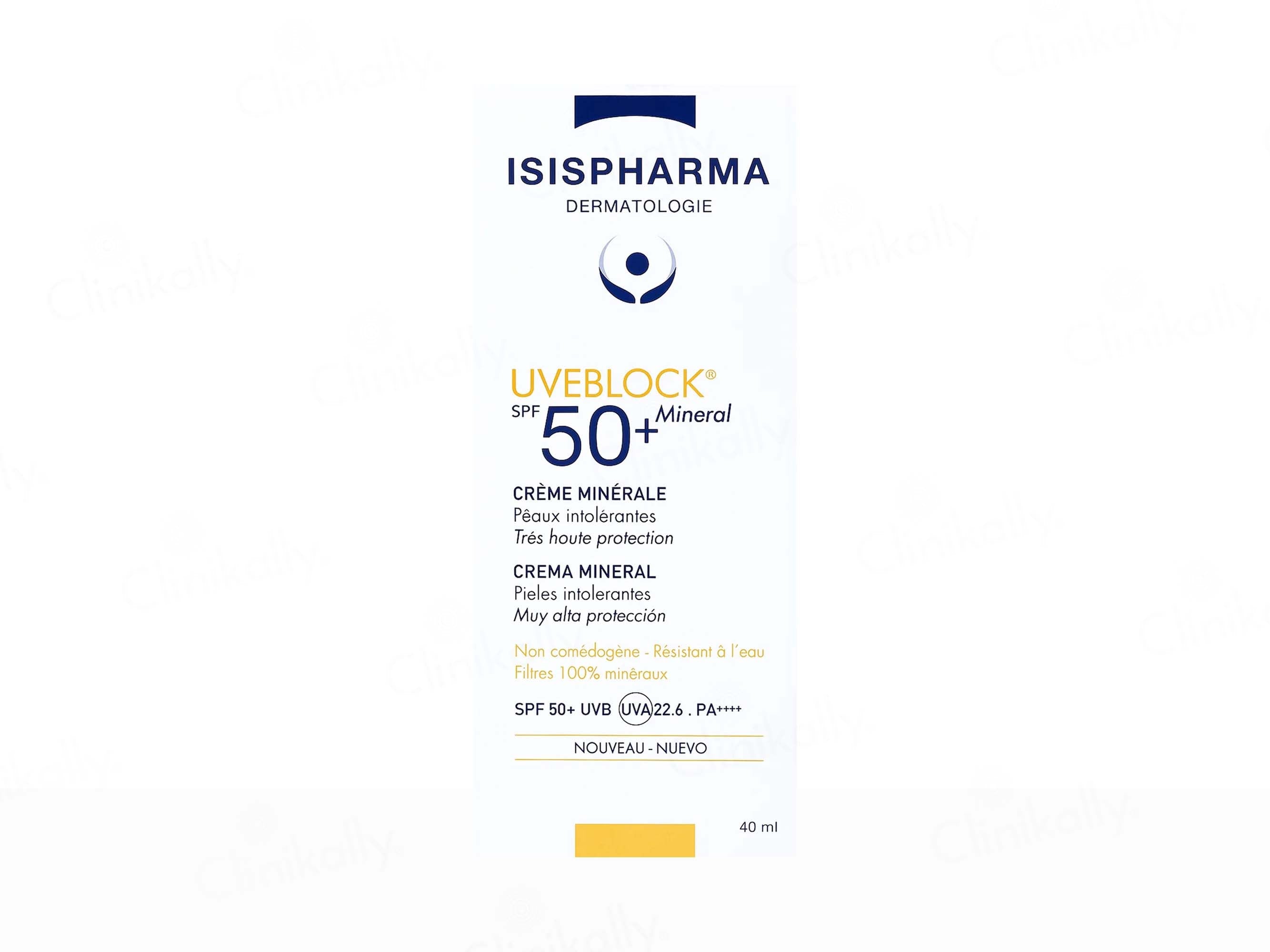 Isispharma UVE Block Mineral Cream Sunscreen SPF 50+ PA++++ is a high-protection mineral-based sunscreen specifically formulated for intolerant and sensitive skin, offering very high UVB/UVA defense with 100% mineral filters. The sunscreen uses Titanium Dioxide [nano] and Zinc Oxide [nano] as physical blockers to provide broad-spectrum protection while being gentle on the skin. The formula includes hydrating and skin-conditioning agents like Glycerin and Pentylene Glycol, along with emollients such as Isohexadecane and Ethylhexyl Stearate to ensure smooth application and comfort. Additional stabilizers like Silica, Nylon-12, and Trihydroxystearin enhance texture and wear, while Chlorphenesin and O-Cymen-5-OL help maintain product stability and skin compatibility. Safe for both face and body, this dermatologically tested sunscreen is non-comedogenic and ideal for daily use, even on highly reactive or intolerant skin.