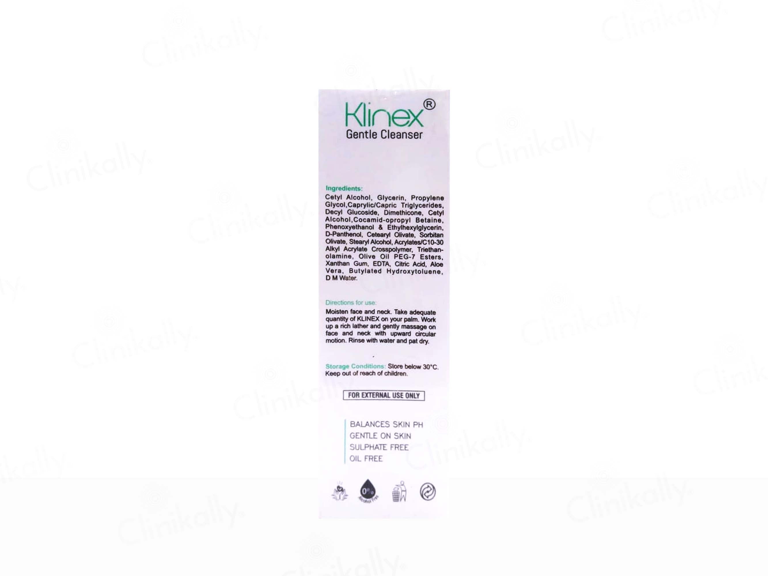 Klinex Gentle Skin Cleanser contains Cetyl Alcohol, Stearyl Alcohol, Glycerin, and Titanium Dioxide.
