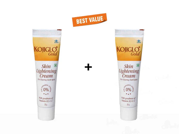 Kojiglo Gold Skin Lightening Cream is a dermatologically formulated solution enriched with Kojic Acid, Glycolic Acid, Vitamin B3 (Niacinamide), and Vitamin C to effectively target dark spots, pigmentation, and uneven skin tone. Infused with licorice root extract, allantoin, and shea butter, it soothes and hydrates while promoting visible brightness and clarity. Free from parabens, steroids, and dyes, this advanced cream gently exfoliates and supports skin renewal without irritation. Ideal for daily use, Kojiglo Gold restores natural radiance and helps reveal a smoother, even-toned complexion with lasting luminosity and skin health.