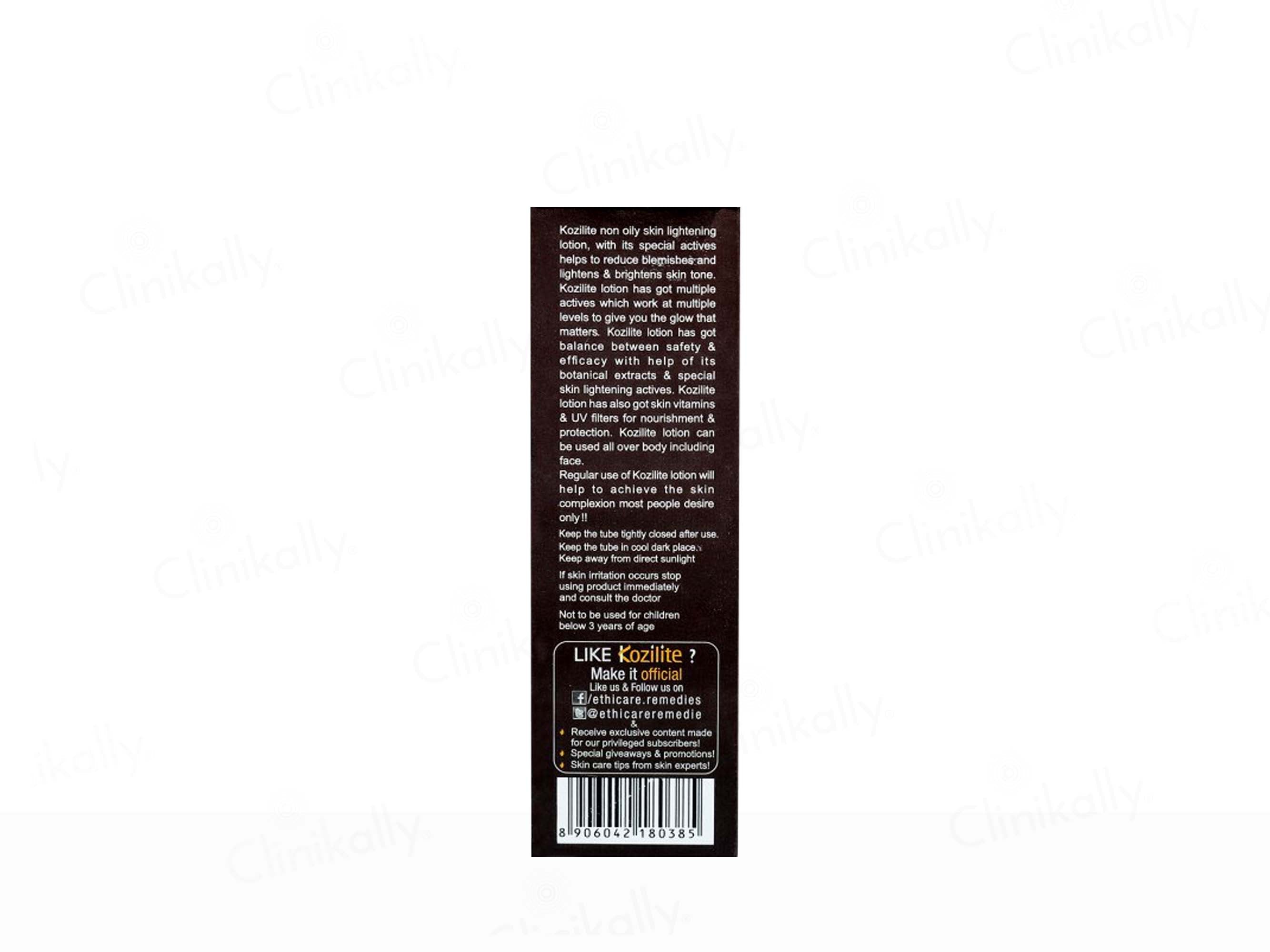 Kozilite Non Oily Skin Lightening Lotion is a specially formulated lotion designed to lighten and brighten the skin while providing a non-greasy, matte finish. Enriched with a blend of skin lightening agents and antioxidants, this lotion effectively reduces dark spots, hyperpigmentation, and uneven skin tone. Its lightweight formula absorbs quickly, delivering essential hydration without leaving an oily residue. Suitable for all skin types, particularly oily and combination skin, Kozilite Non Oily Skin Lightening Lotion is ideal for daily use to achieve a more radiant and even complexion.