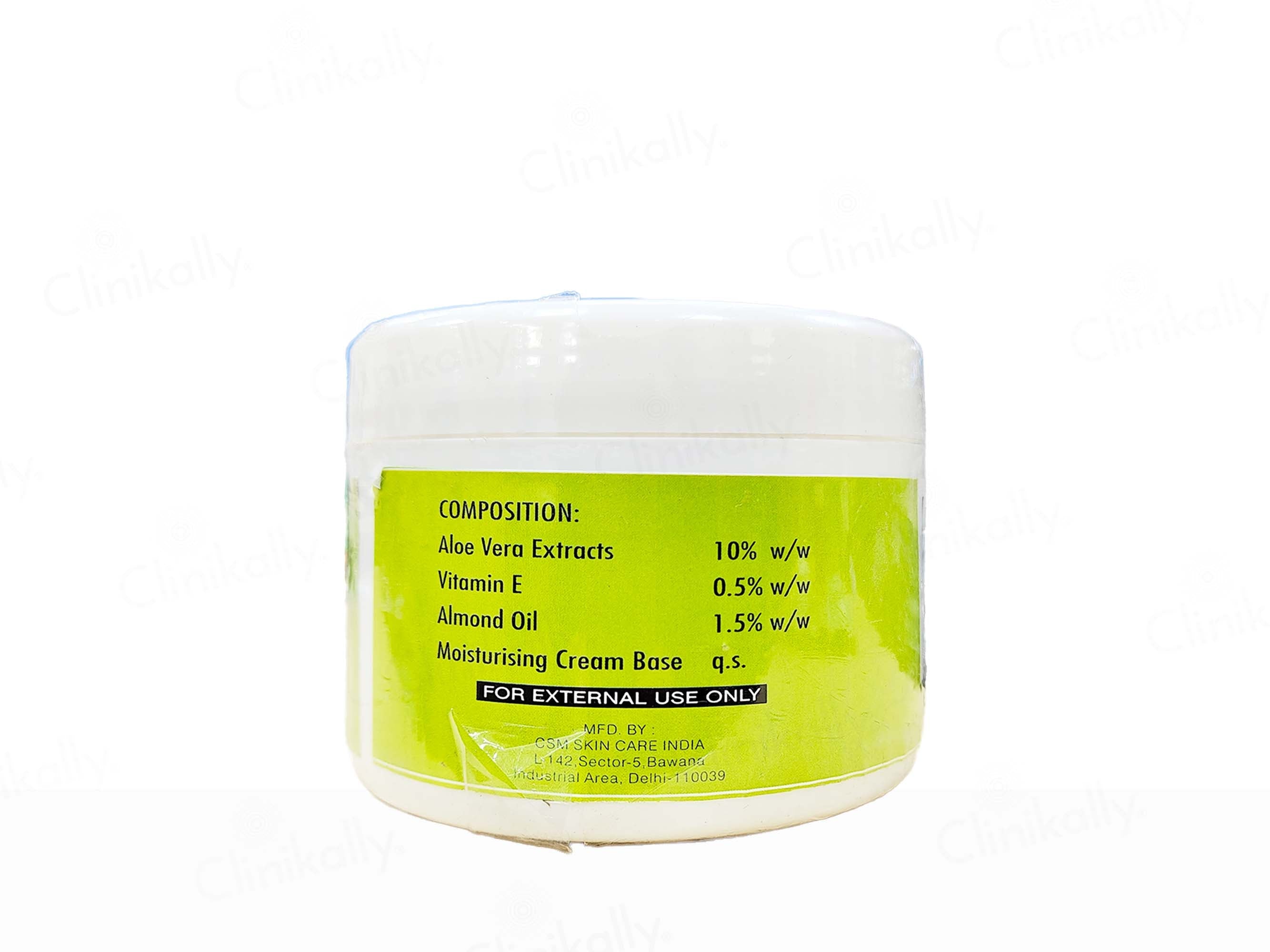 La Moist Aloe Vera Cream contains Aloe Vera Extract, Vitamin E, Almond Oil, and a moisturizing cream base.